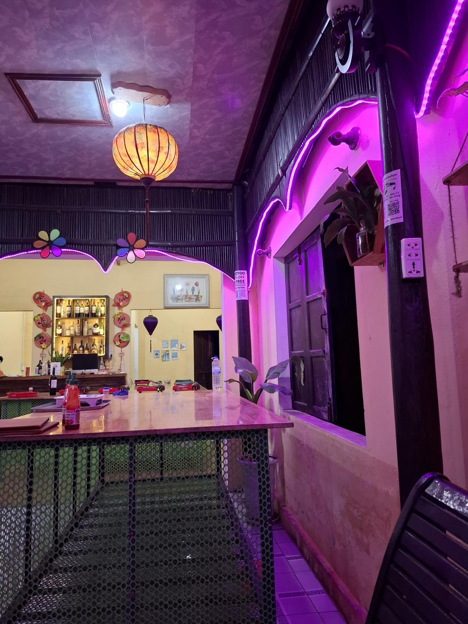 パープルな照明で、ご夫婦でやっています。