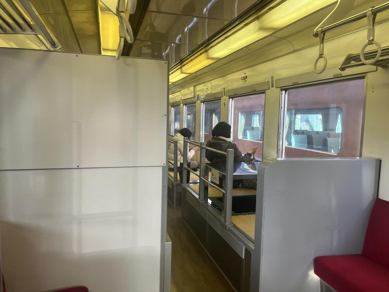 お座敷車両でした。混んでいるのと、明日も乗るからとあまり写真は撮れず。