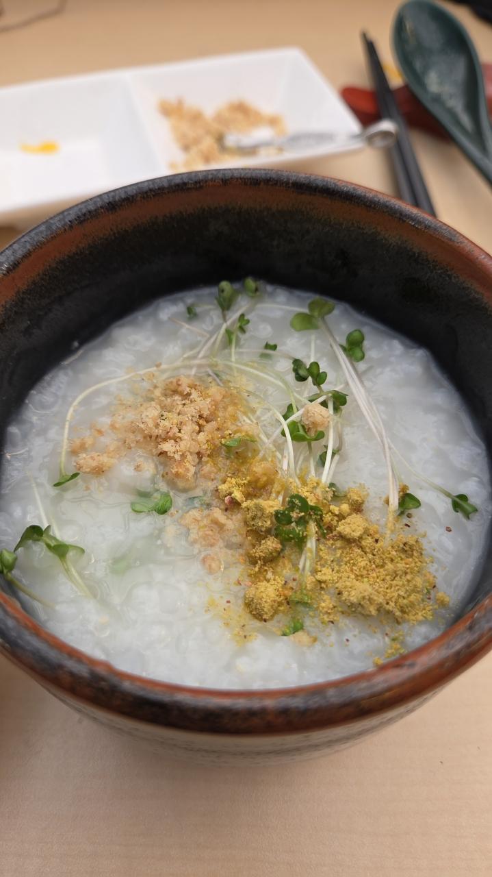 お粥をこちらに入れて食すようにとのこと。お粥に入れるとお粥が冷めてしまうからだとか。 -