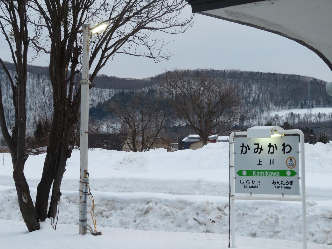 特に、ミラノコルティナ五輪の最終日だったので、二人を応援するのぼりや横断幕が至るところに掲げてあった。上川駅 駅