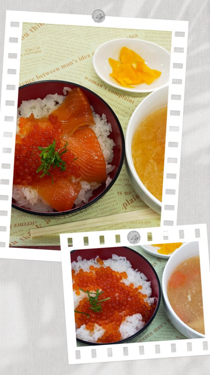 あら汁付き「にじますのイクラ丼」と「にじますの親子丼」をいただく。