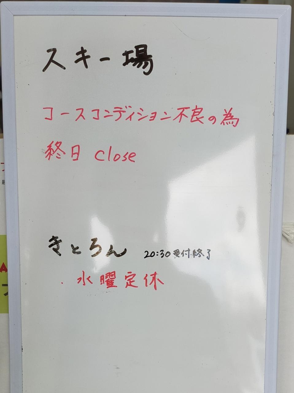 挙句の果てに、この日スキー場はコンディション不良の為に、終日クローズだという。