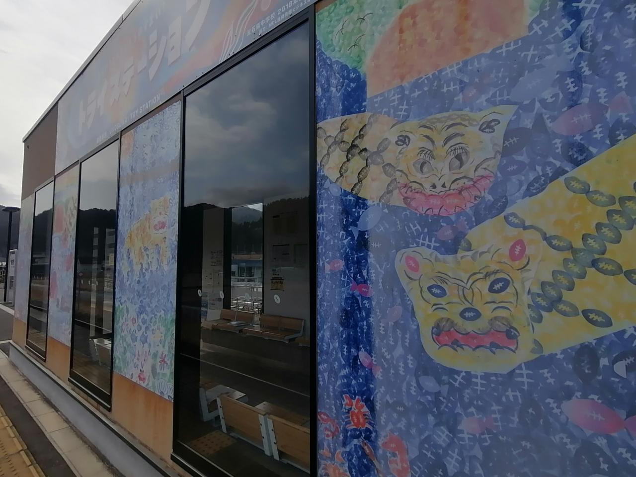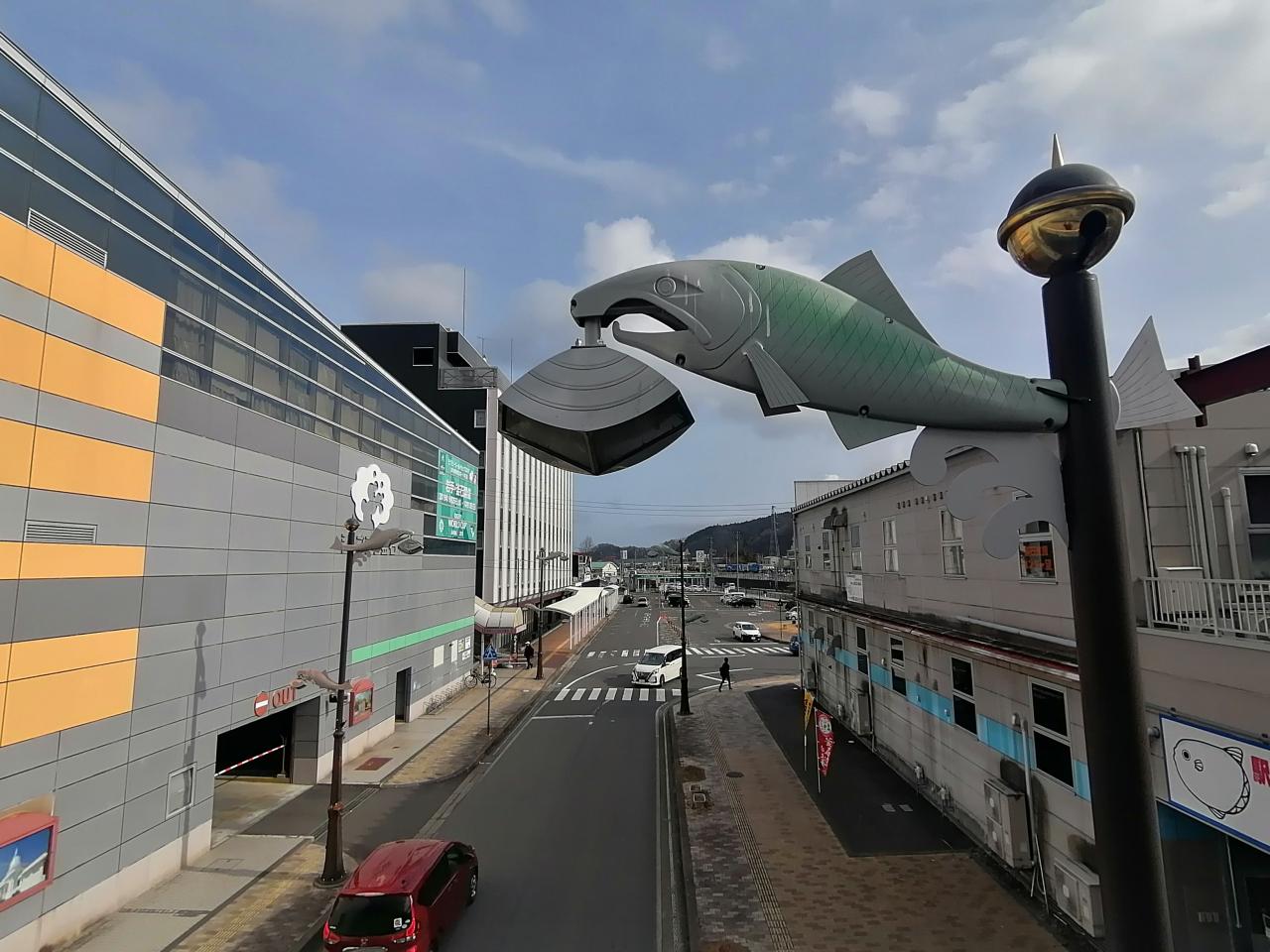 釜石駅に到着。14:19発の電車に乗り換えますが少し時間があるのでいったん駅をでました。 -