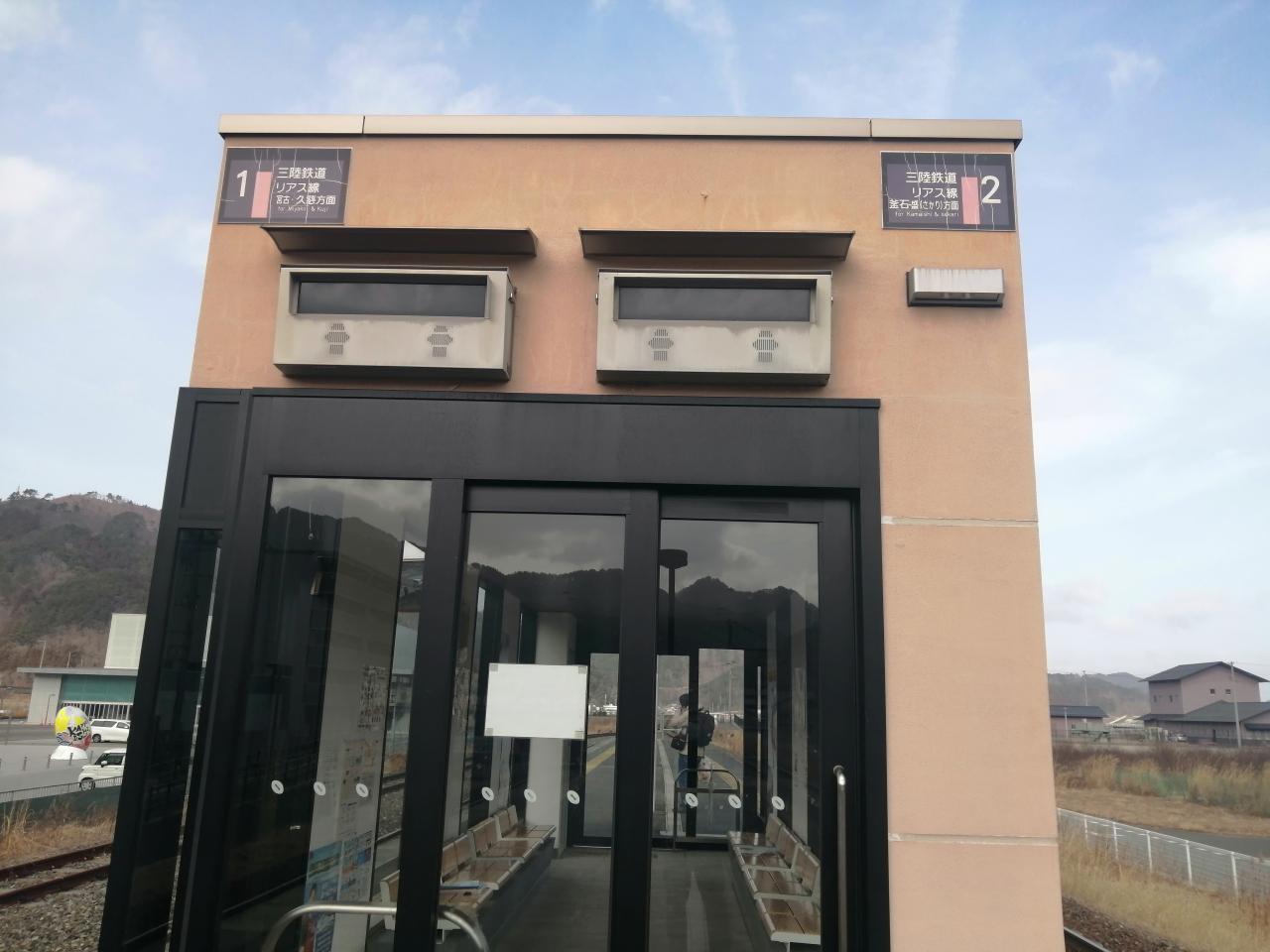 三陸鉄道の駅舎にも津波の浸水表示がありました -