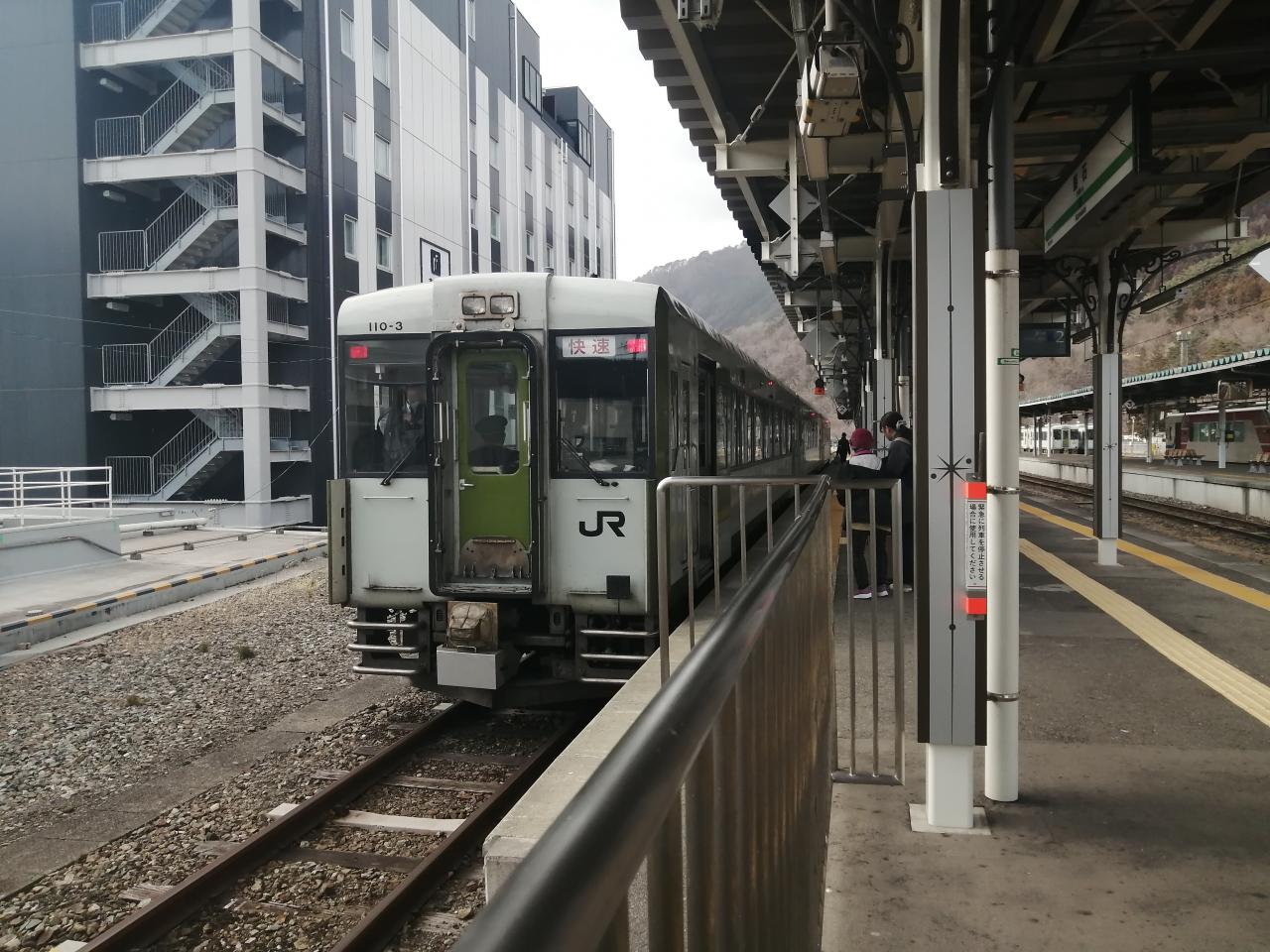 これから乗車する14:19発の快速はまゆり6号です。1時間半くらい乗って土沢駅に行きます。 -