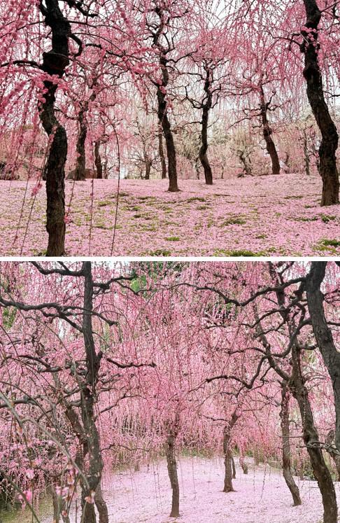 咲き誇るしだれ梅が見られたのは、とてもラッキーでした