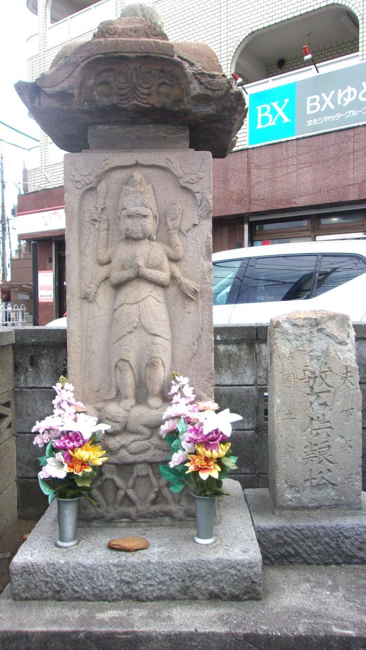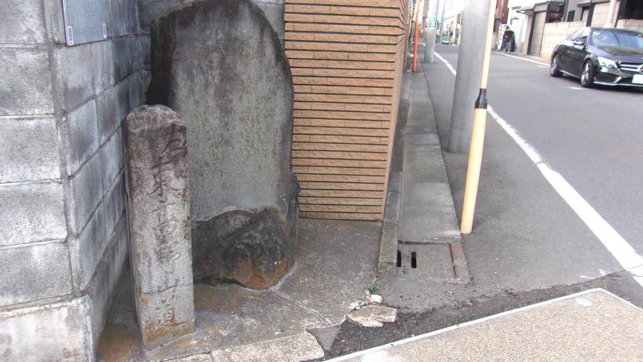 新目白通りをさらに西に進むと貫井の丘の上で、東高野道の分岐の道標が保全されている。