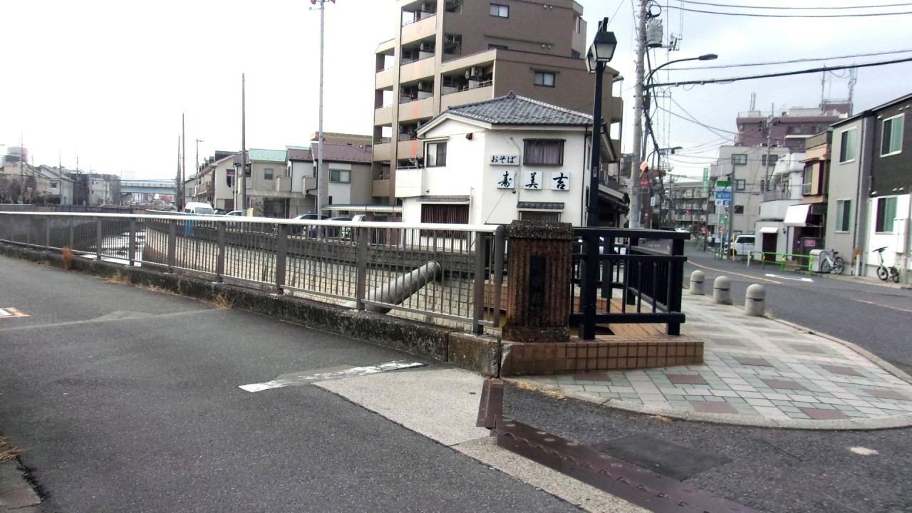 道楽橋の少し西に、練馬区を東西に貫く「清戸道」が石神井川を渡っていた旧宮田橋あったとされる。