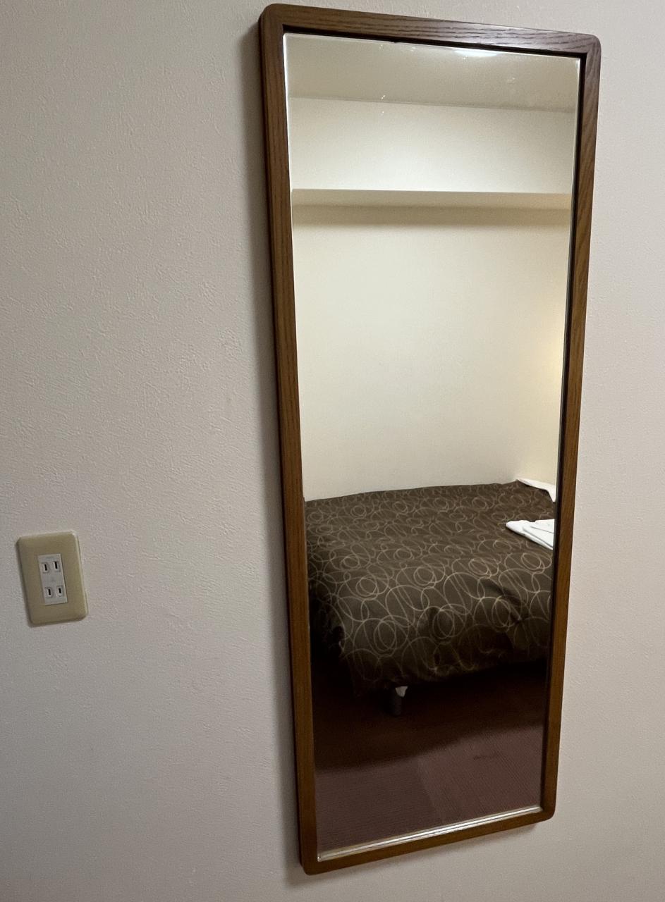 机横に姿見。入り口にあった方が、部屋を出る前のチェックに便利だと思うのですが。