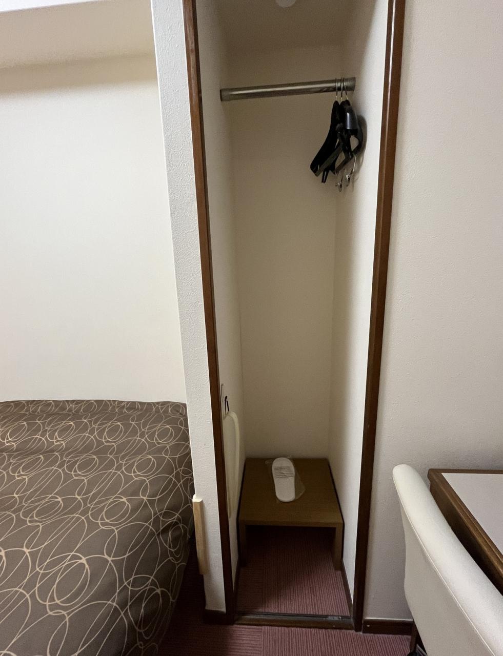 ベット足元と、机の間にロッカー。使い捨てスリッパ。