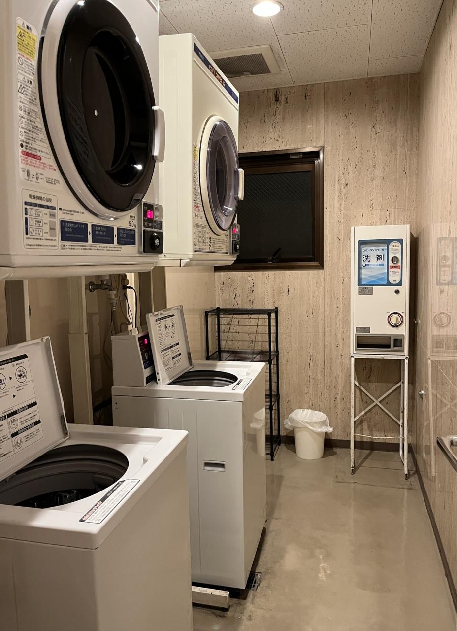 一階フロント裏側のコインランドリー。洗濯機、乾燥機2台ずつ。