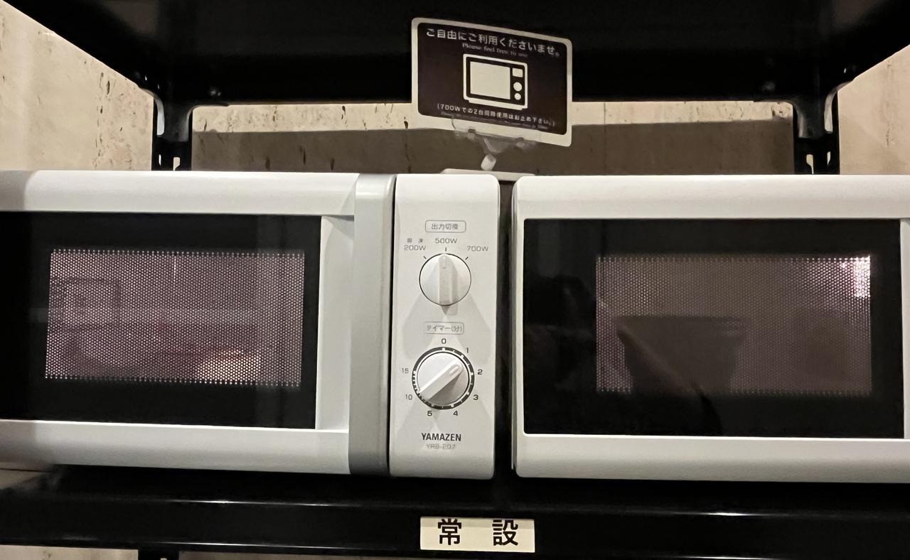 上から、備え付けの電子レンジ二機。 -