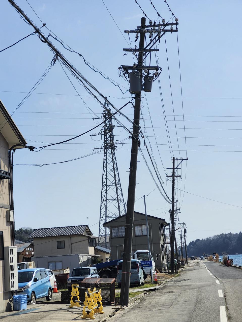 帰り道、電柱が左右に微妙に斜めになったままです。