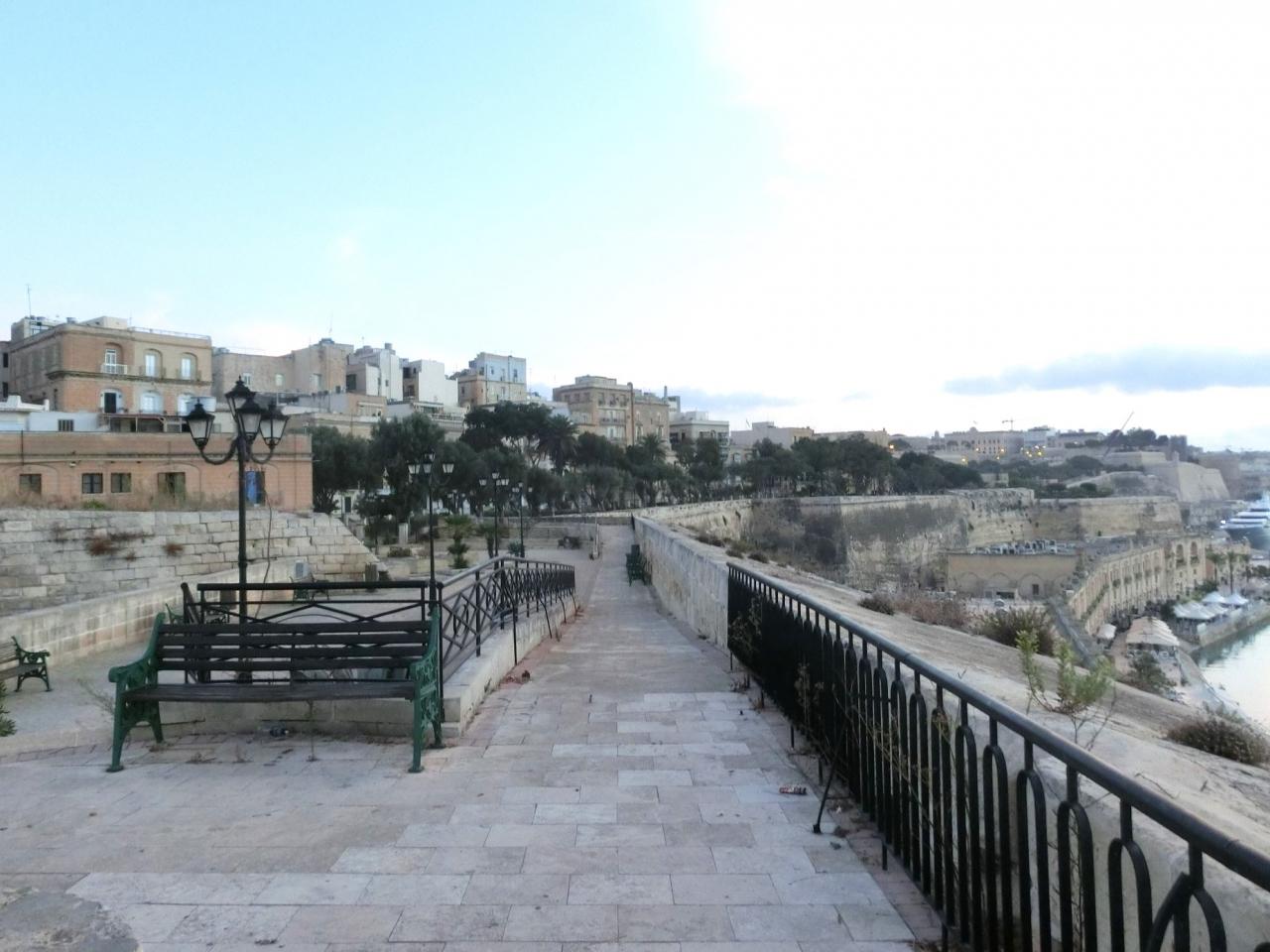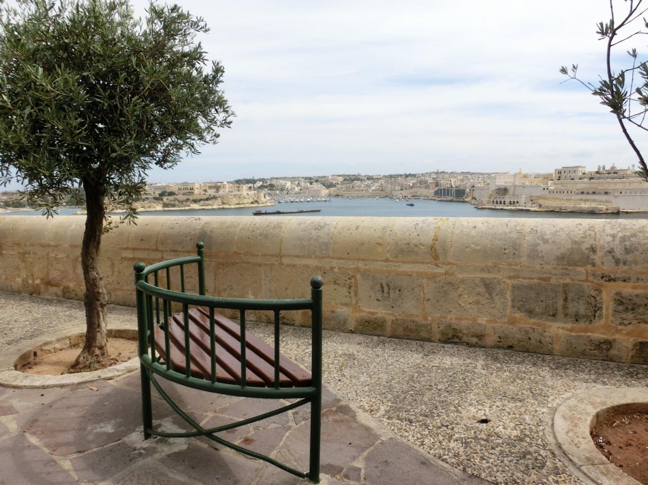 ここのベンチに座って海を眺めると、絶景やん!ヴァレッタ市街 旧市街・古い町並み