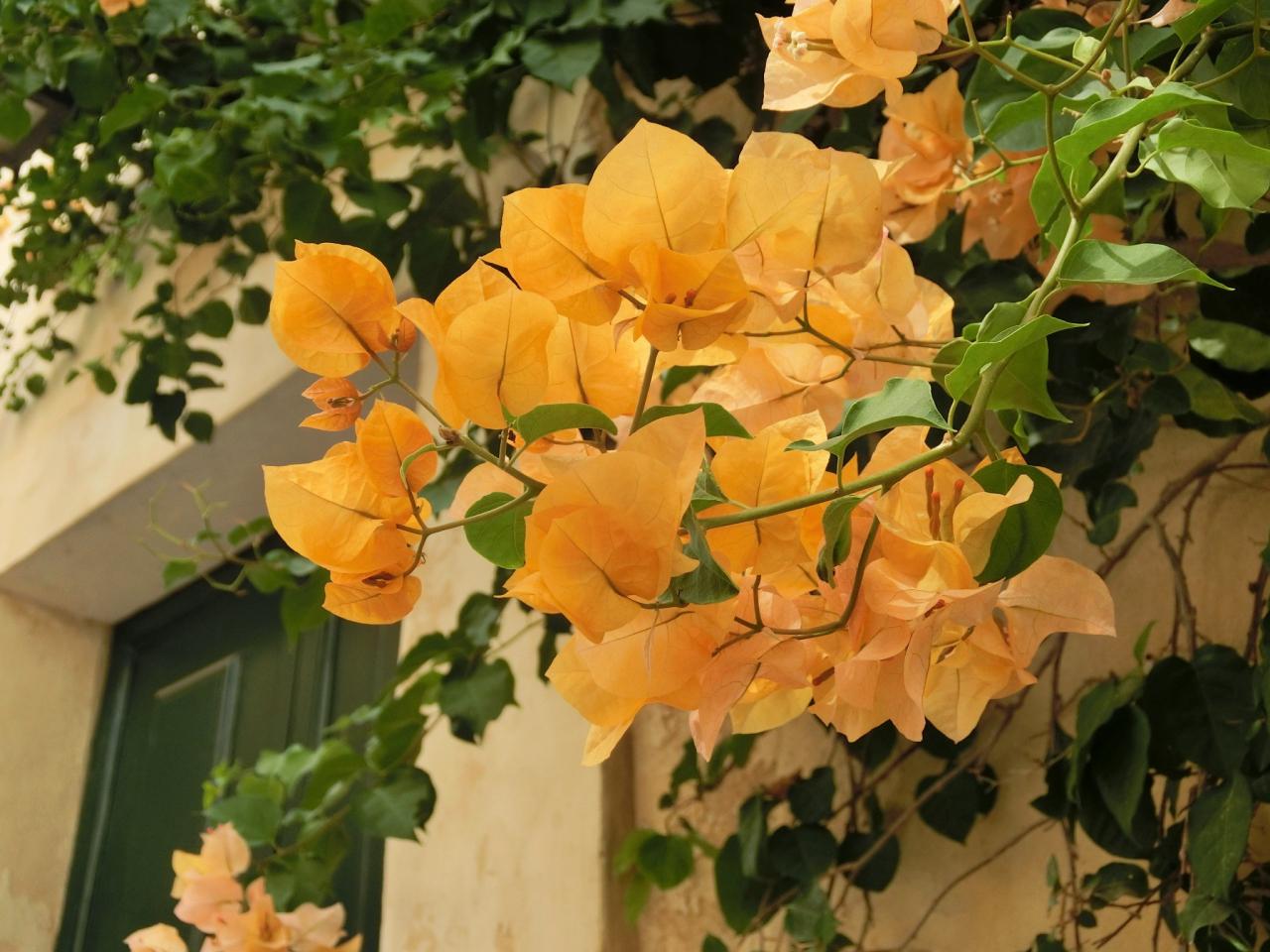 はちみつ色の建物にオレンジ色のブーゲンビリア。