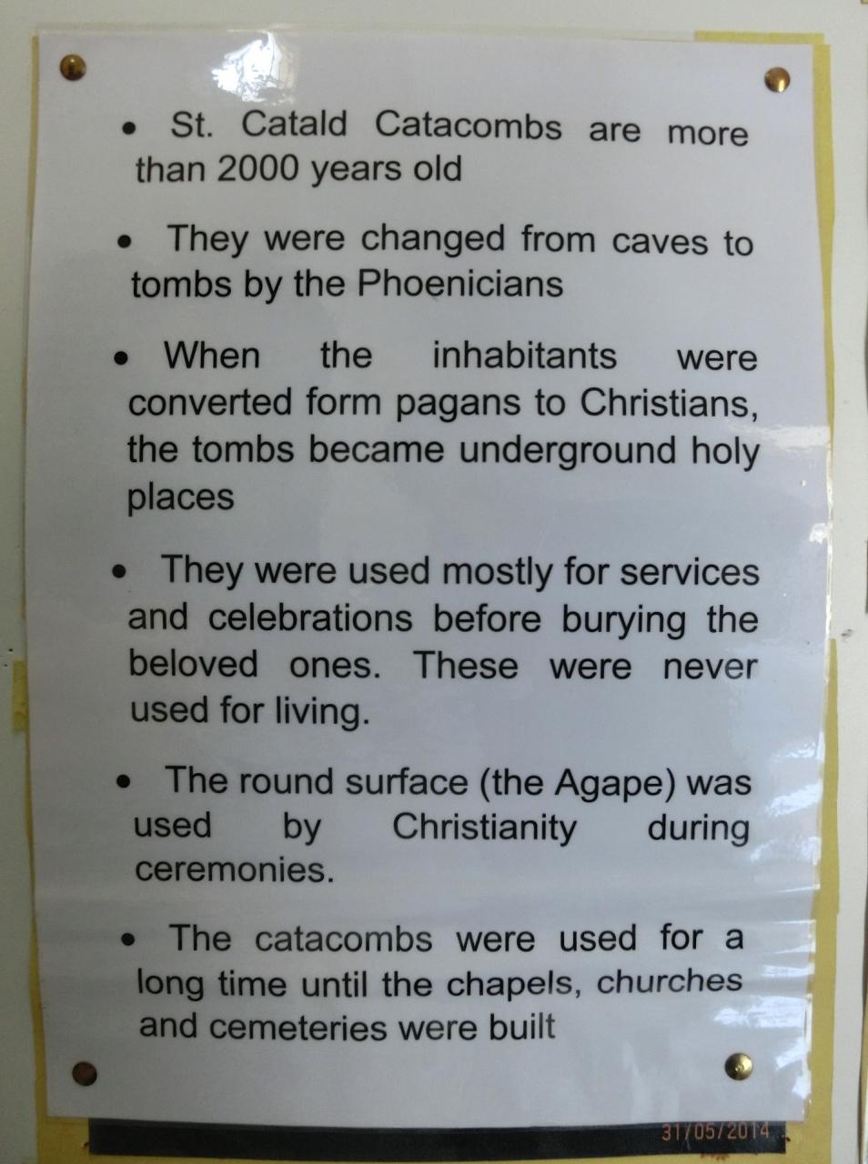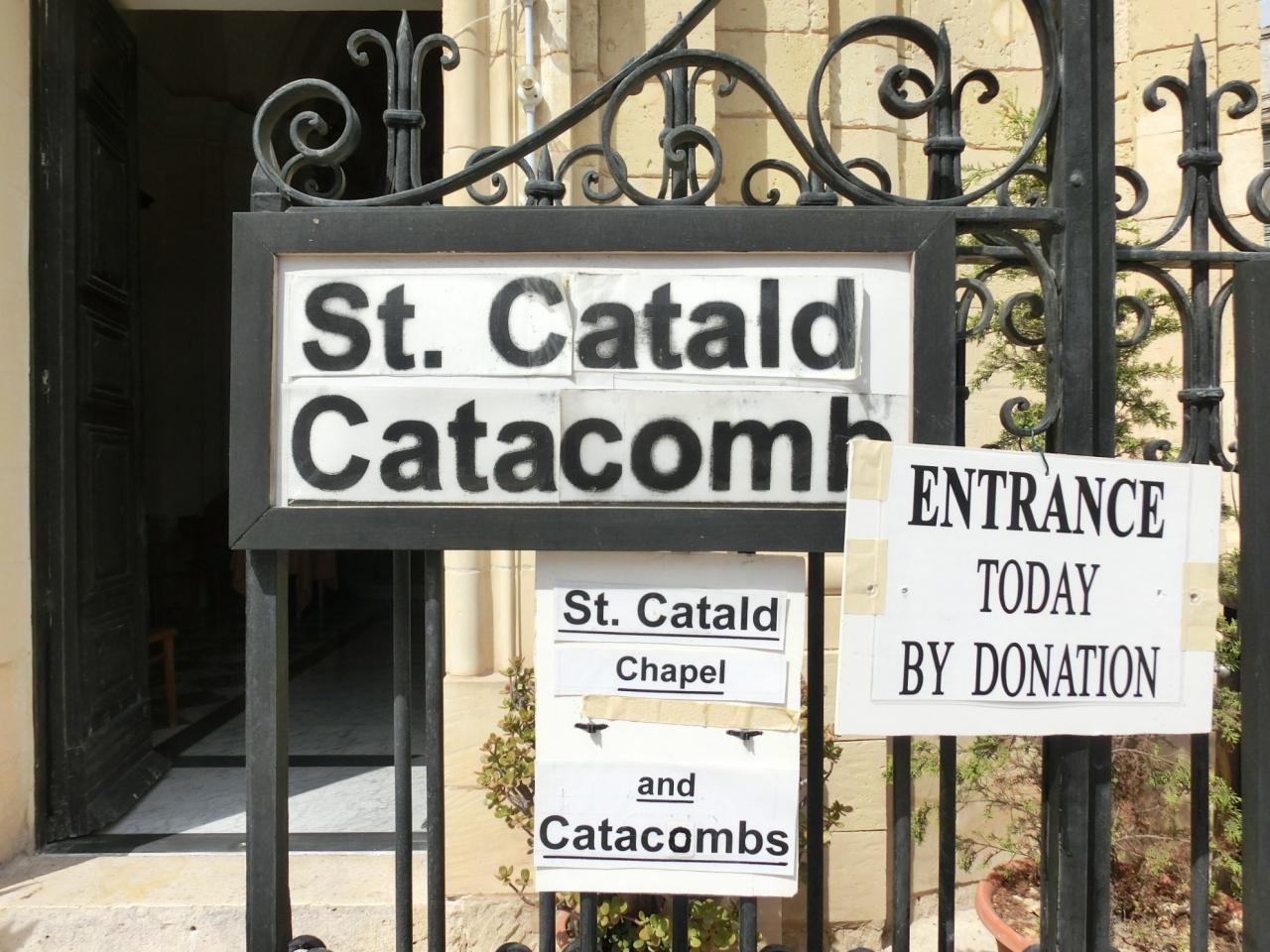 地下墓地カタコンベのエントランスの看板。