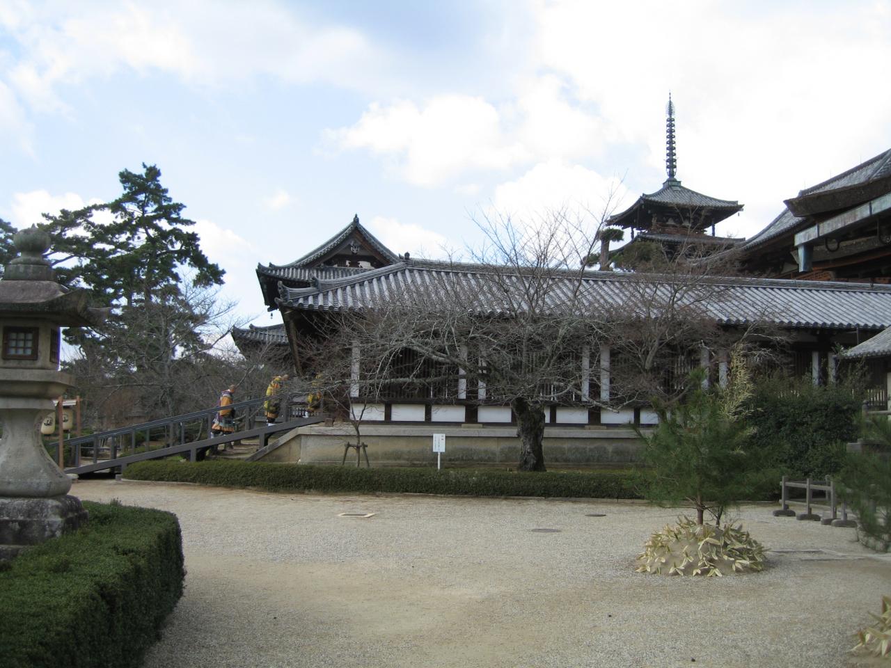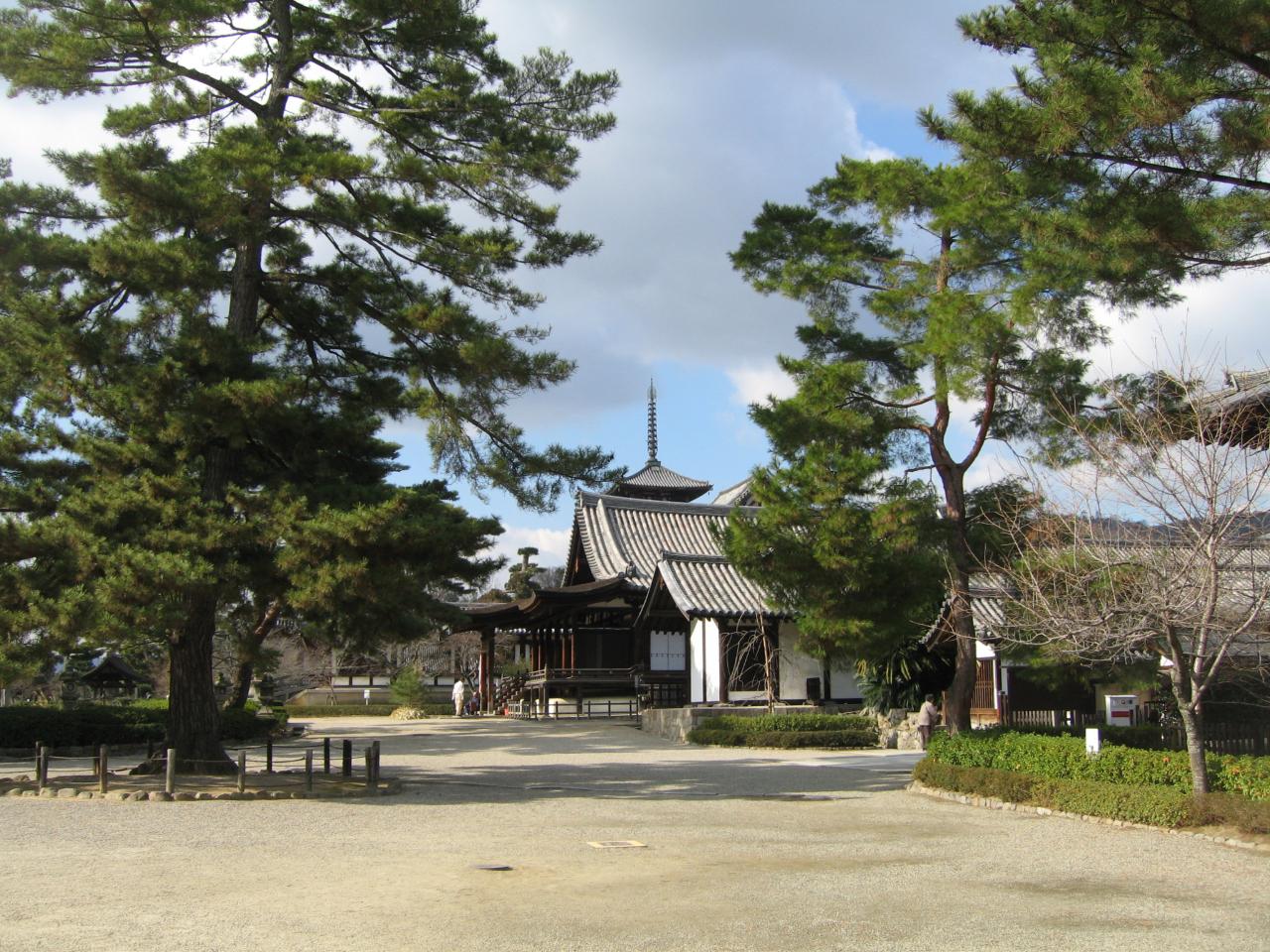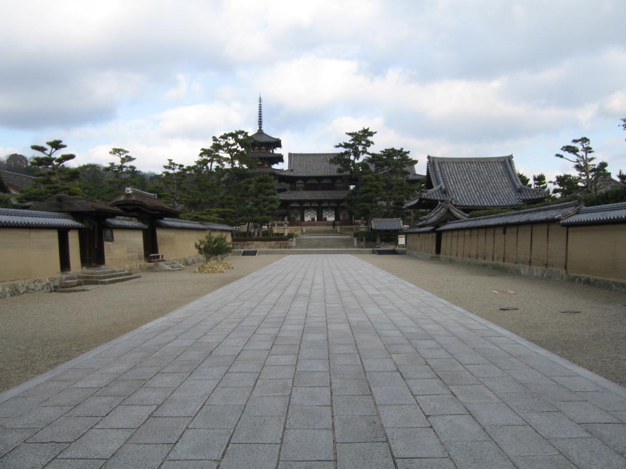 法隆寺は左。右にはいろんなお寺があるみたいです。後でいくつか行ってみます。