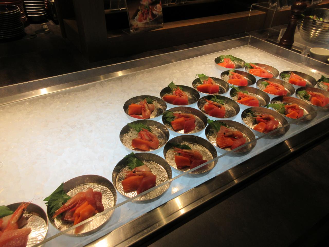 さて、時間になったのでレストランへ。お刺身盛り合わせ。