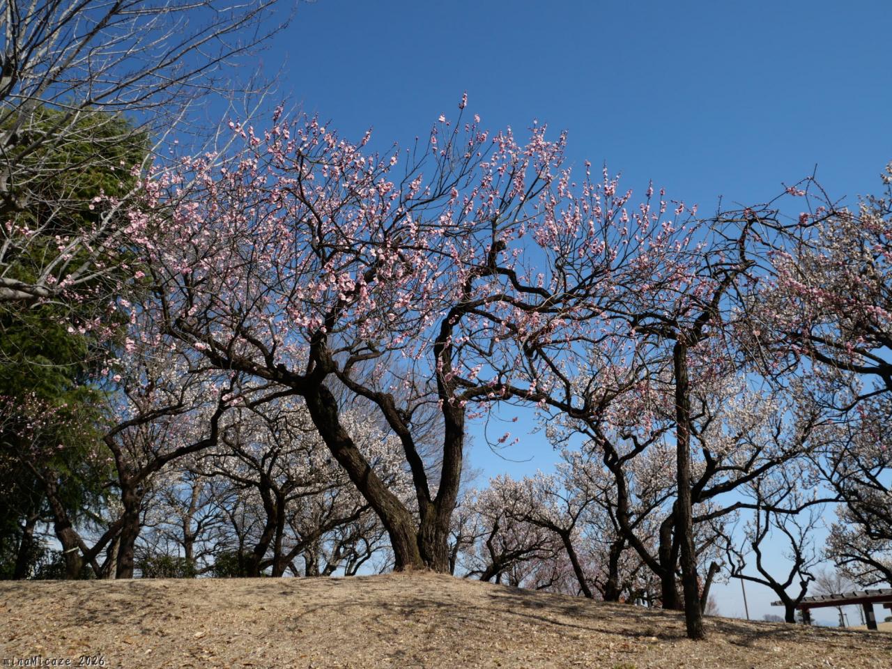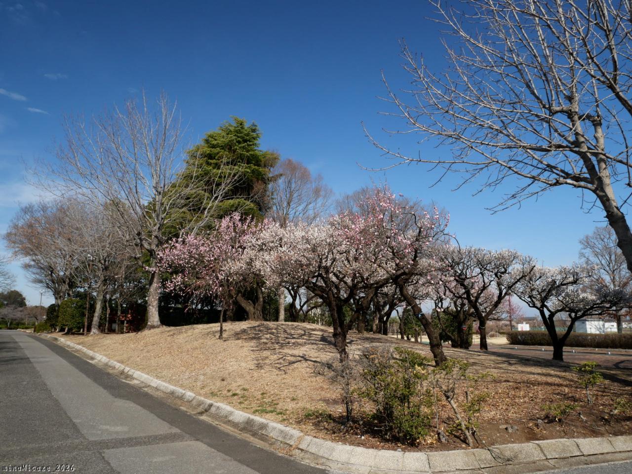 園内路を西へ歩くと、小さな築山に造られた小さな梅林があります。
