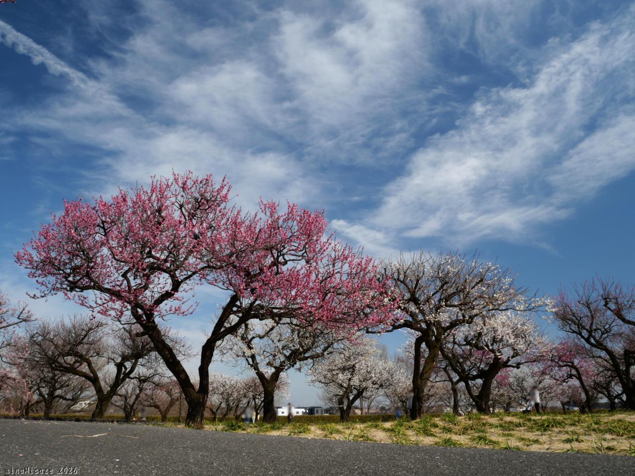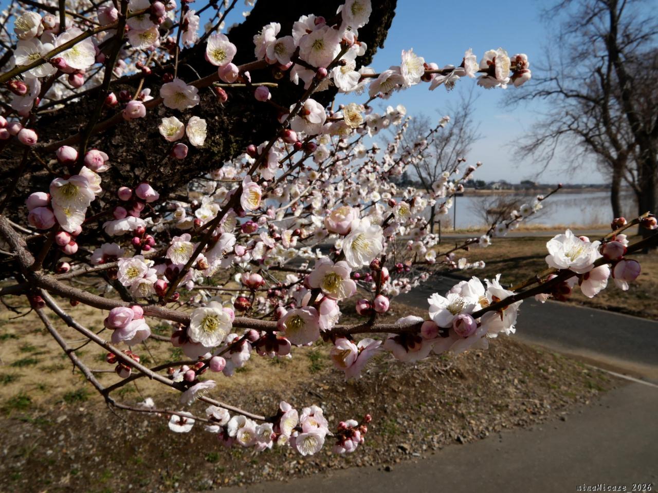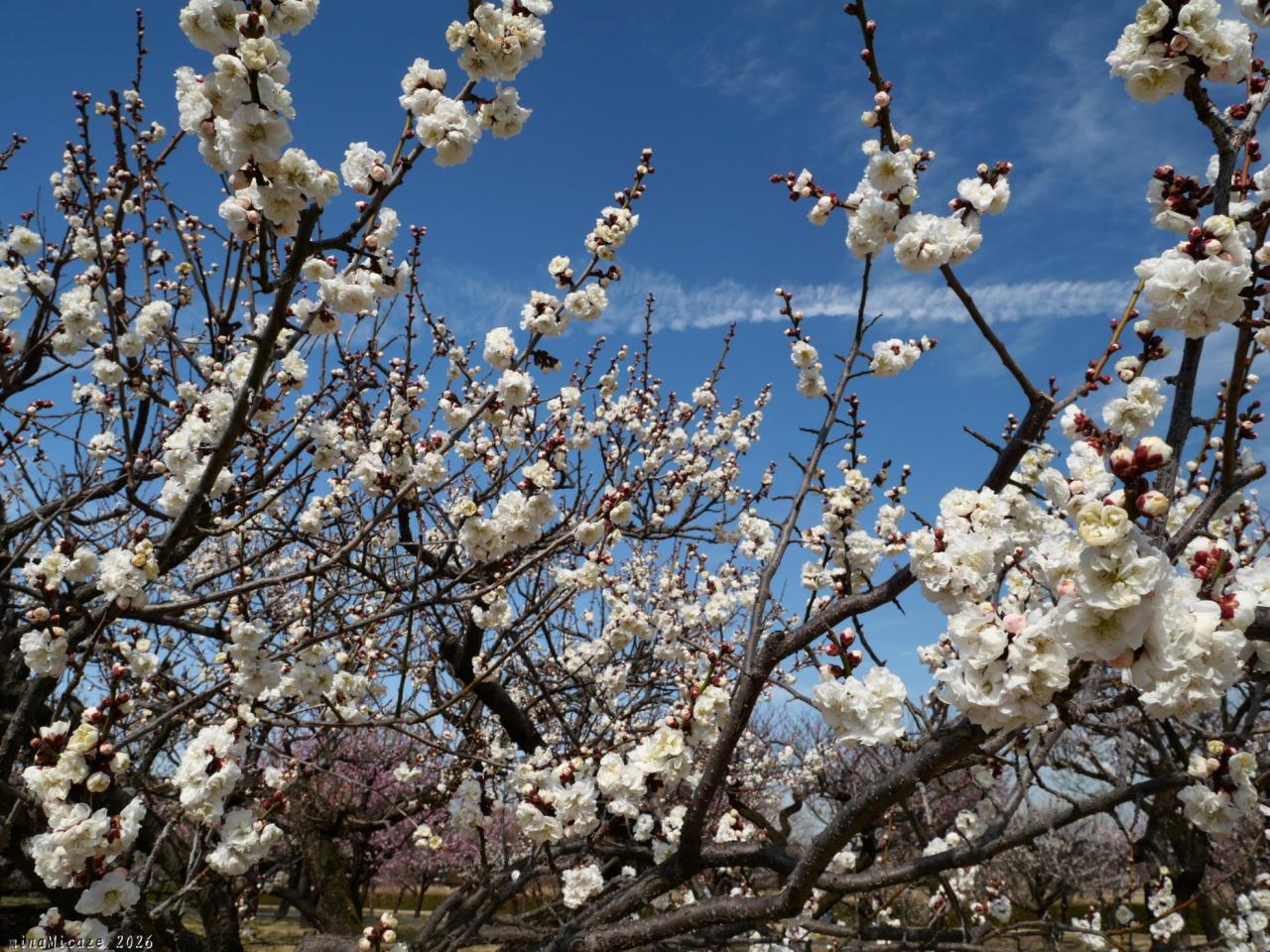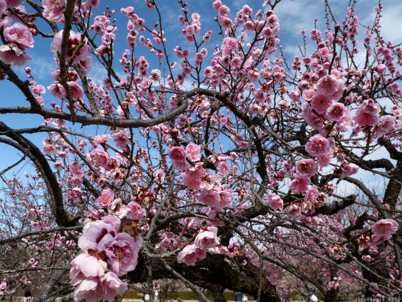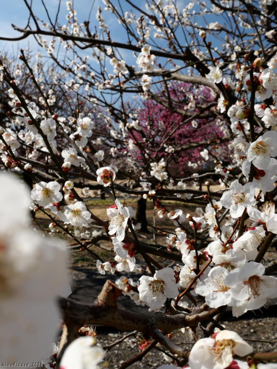 群馬県館林市の「つつじが岡公園」へ、ウメを見に行きました。紅梅、白梅ともに咲き続けていて、ロウバイも未だ咲いていて、赤、白、黄色が揃って綺麗でした。早くから咲いていた花は傷み始めてますが、遅く咲いた花は未だ綺麗ですし、これから咲きそうなツボミもあるので、見頃継続中の印象でした。