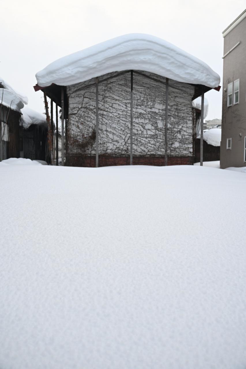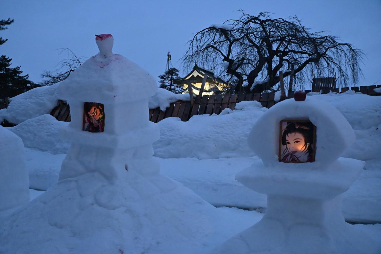 お辞儀だけでなく悩んでいる雪灯篭もあります。
