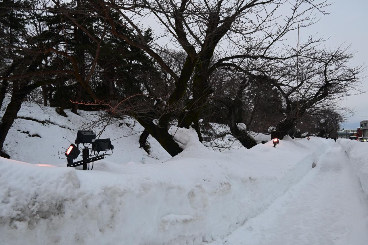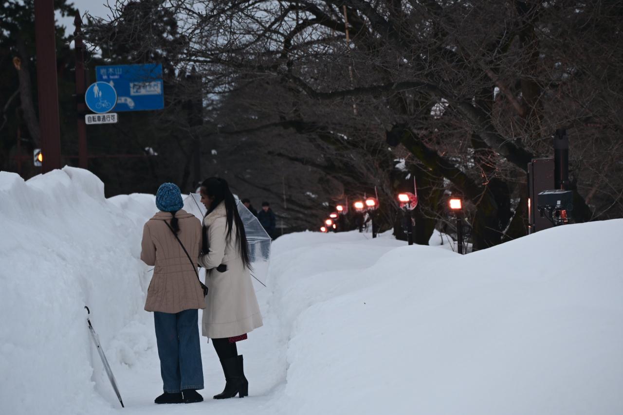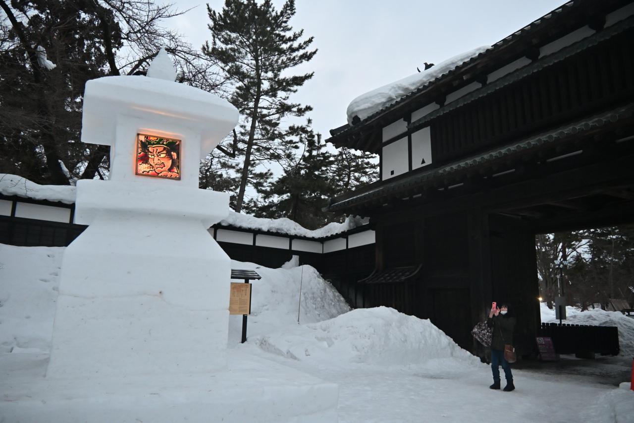夜の雪まつりを見るために弘前城へ向かいました。