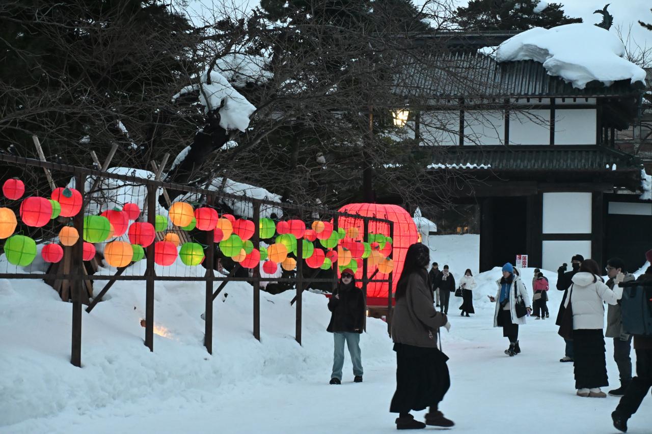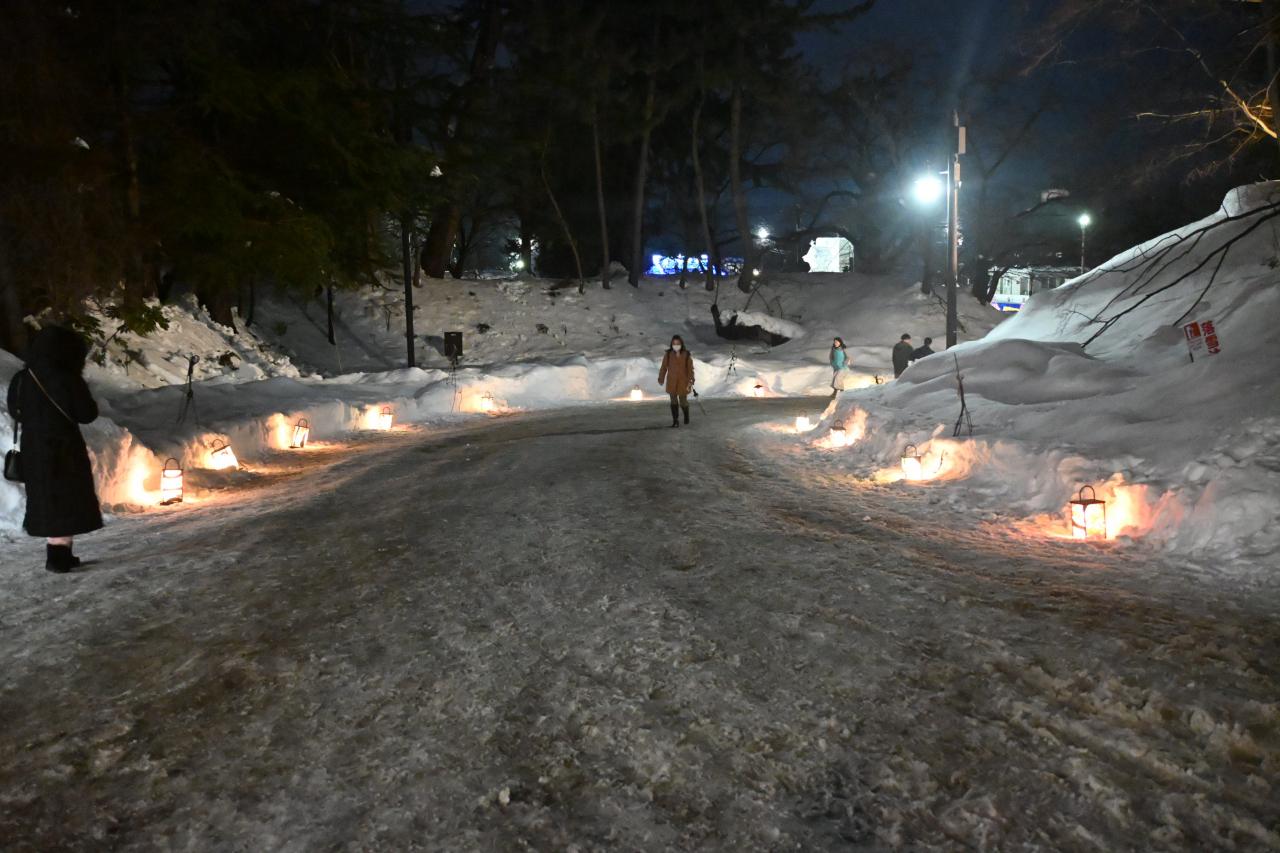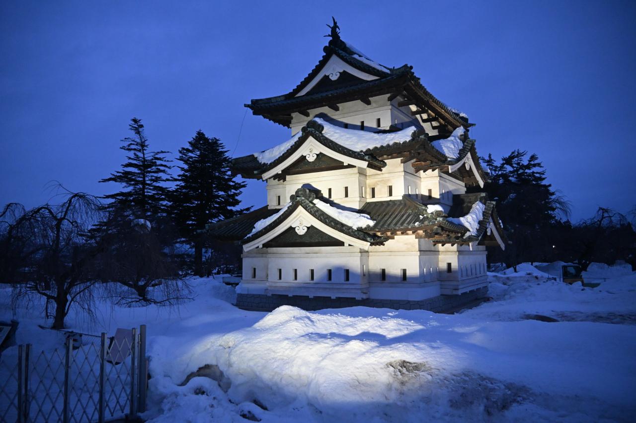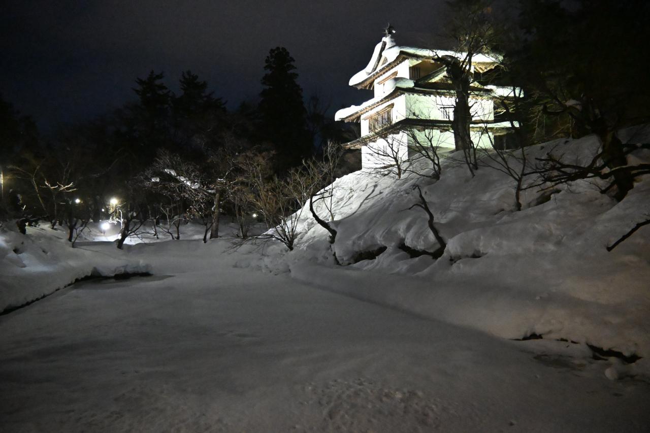 夜の雪まつりを見るために弘前城へ向かいました。