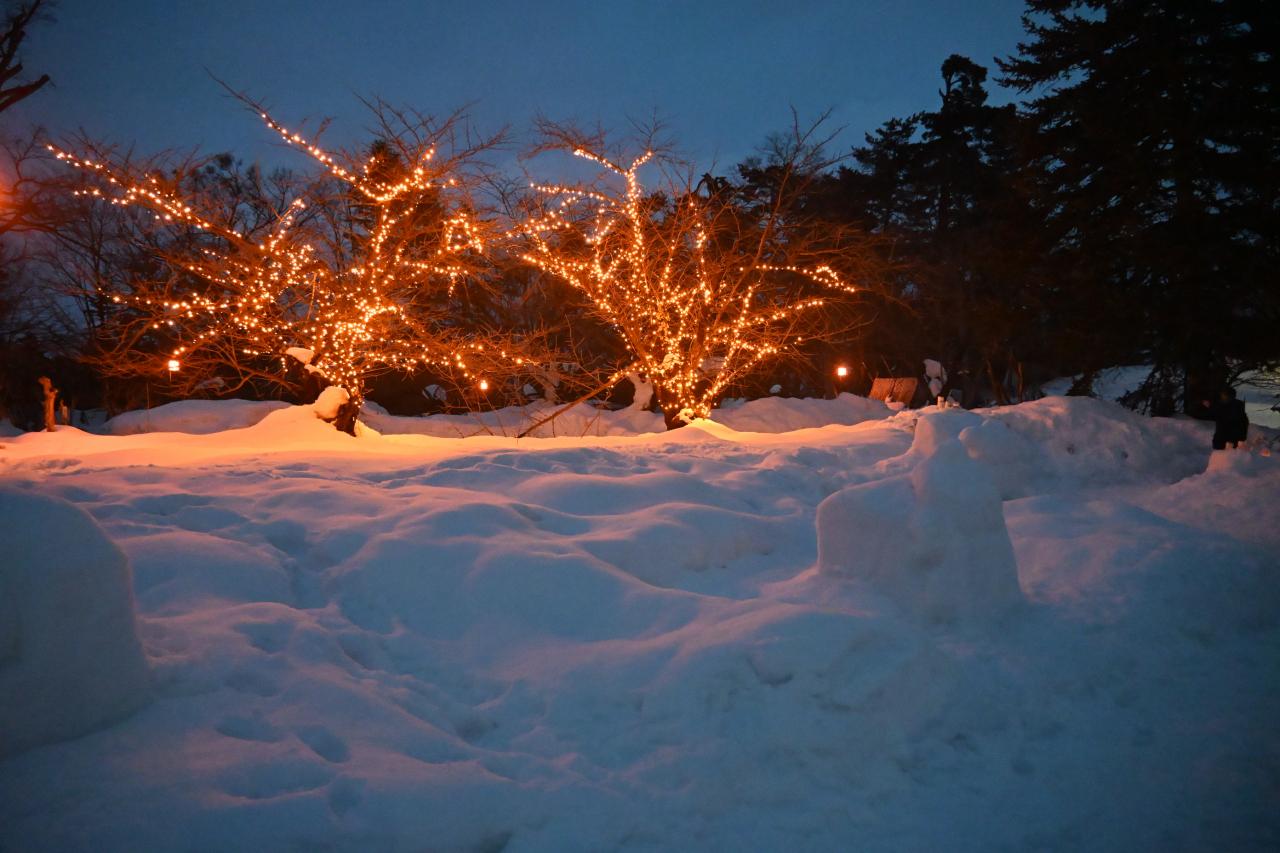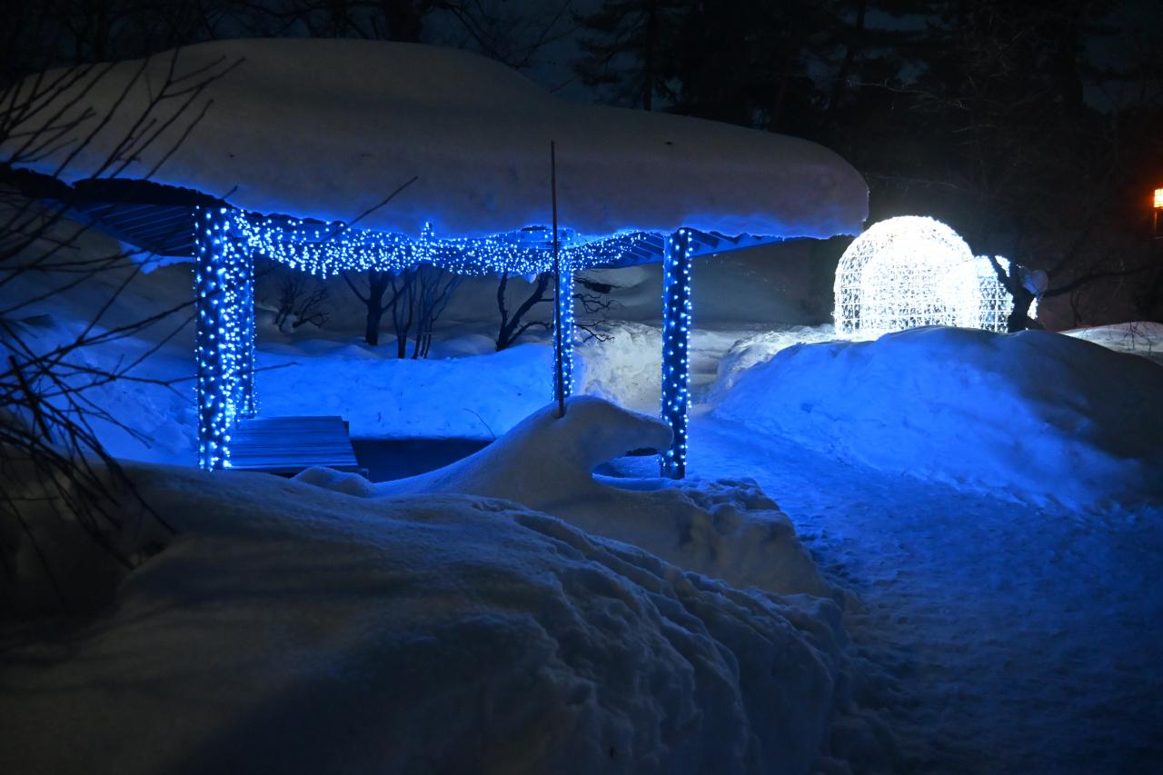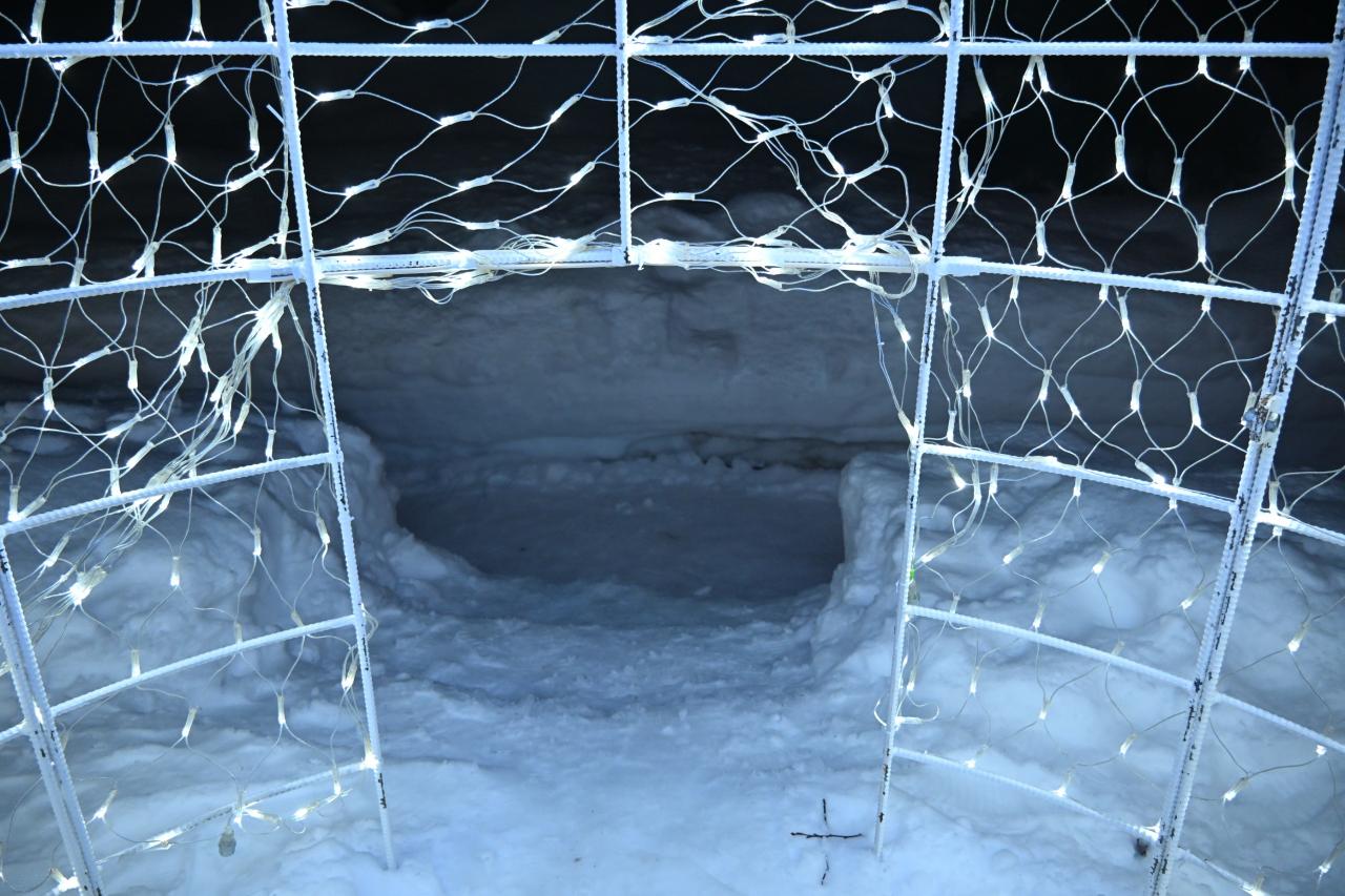 雪灯篭にも明かりがともりました。