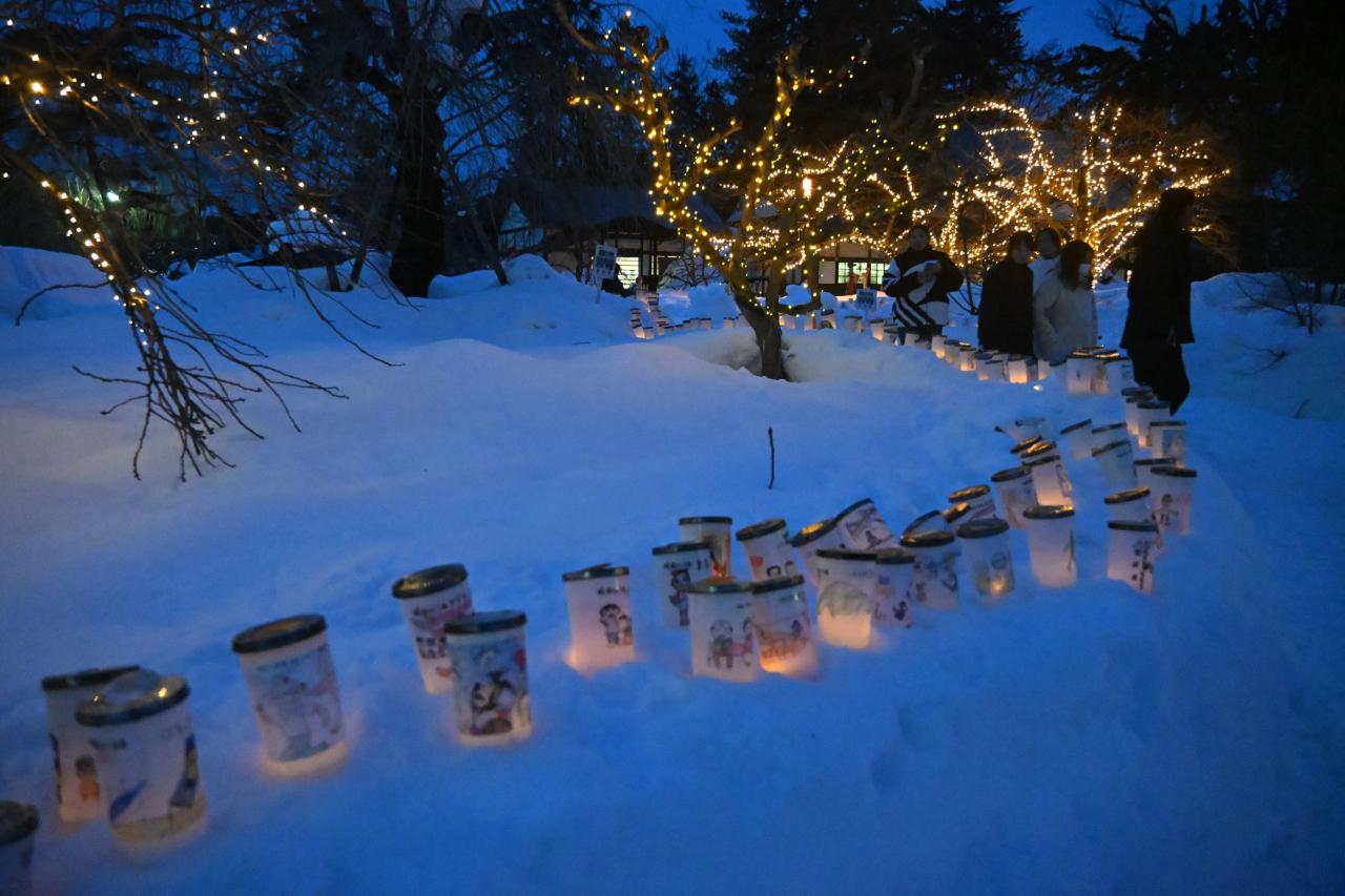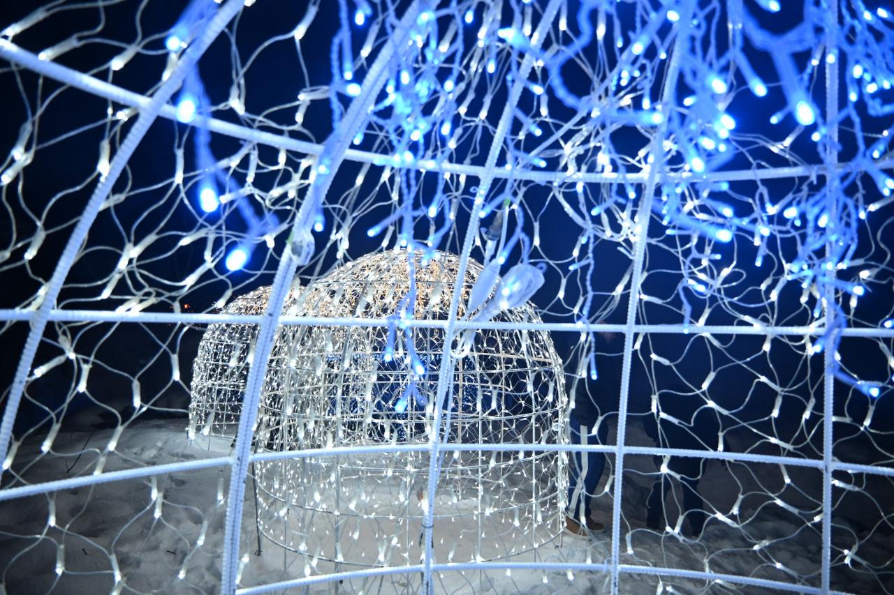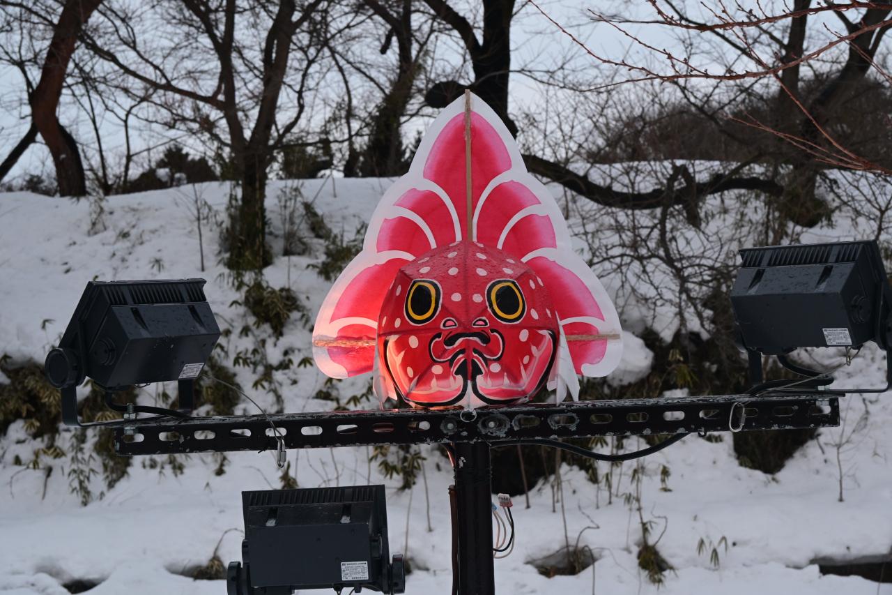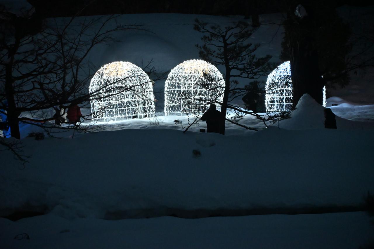 雪灯篭にも明かりがともりました。