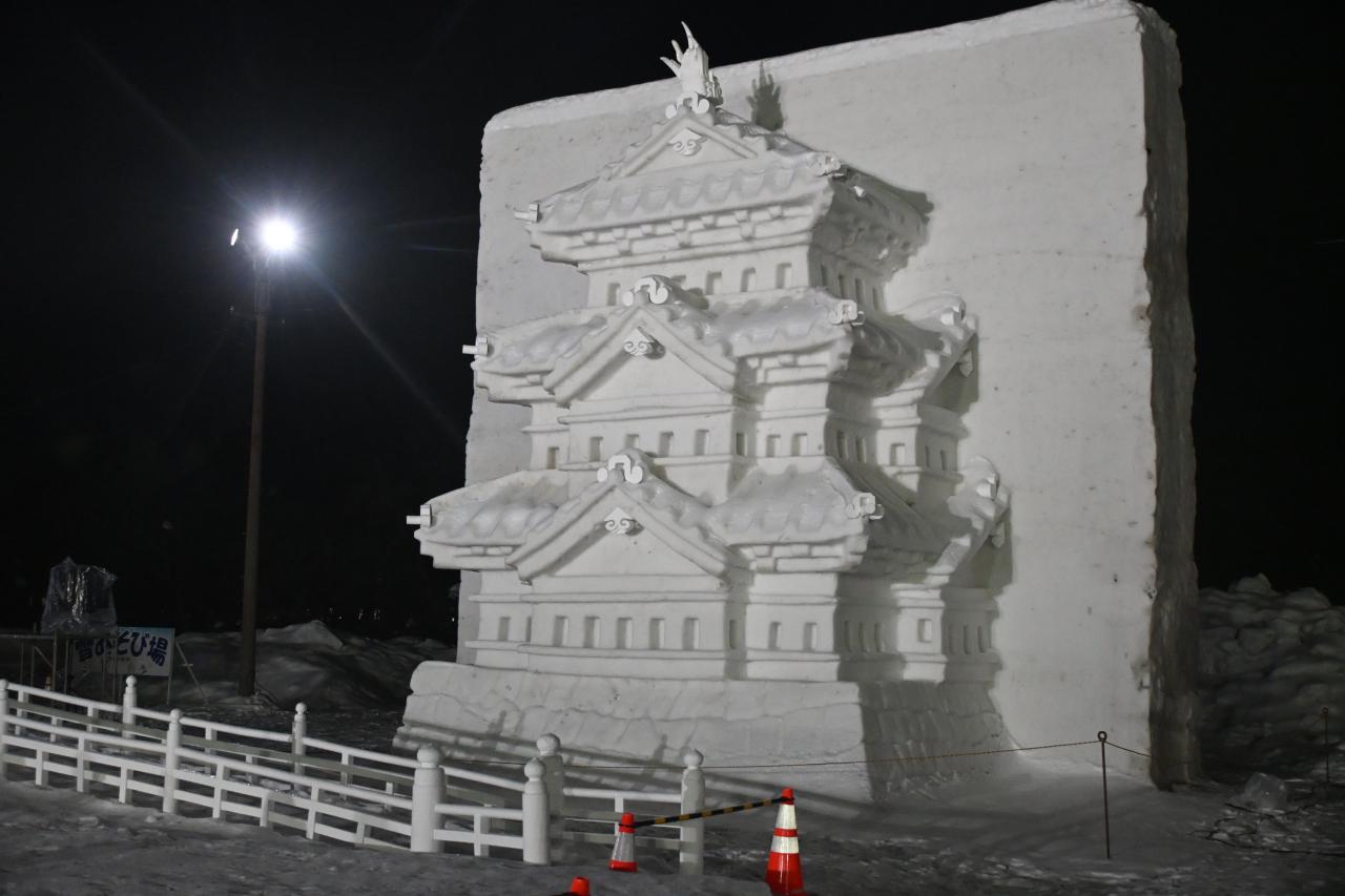 この雪像にプロジェクションマッピングされたのですがちょっと微妙でした。