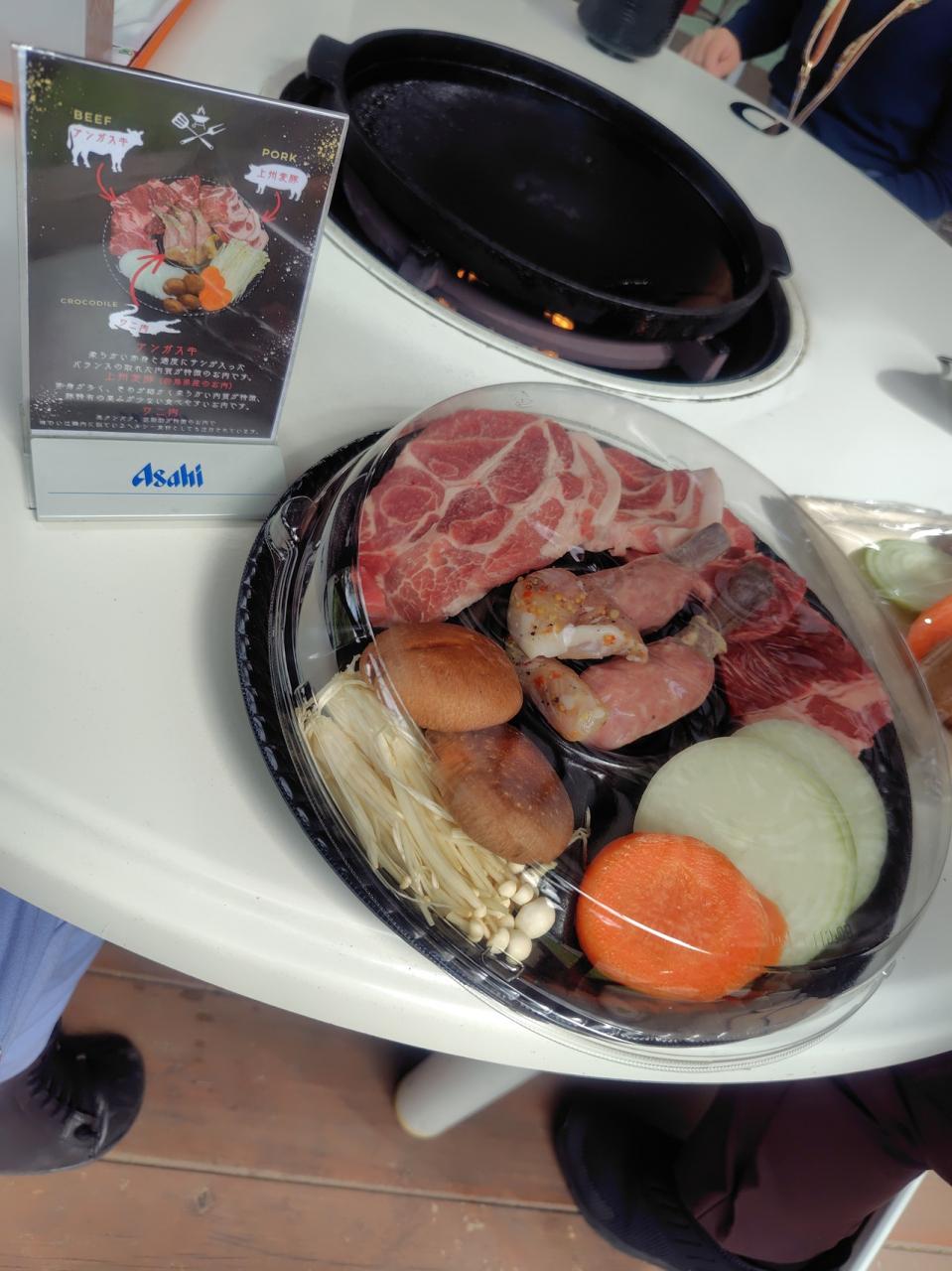 以前来た時と提供されるお肉がかわり、牛肉、豚肉とワニ肉が追加されていました!