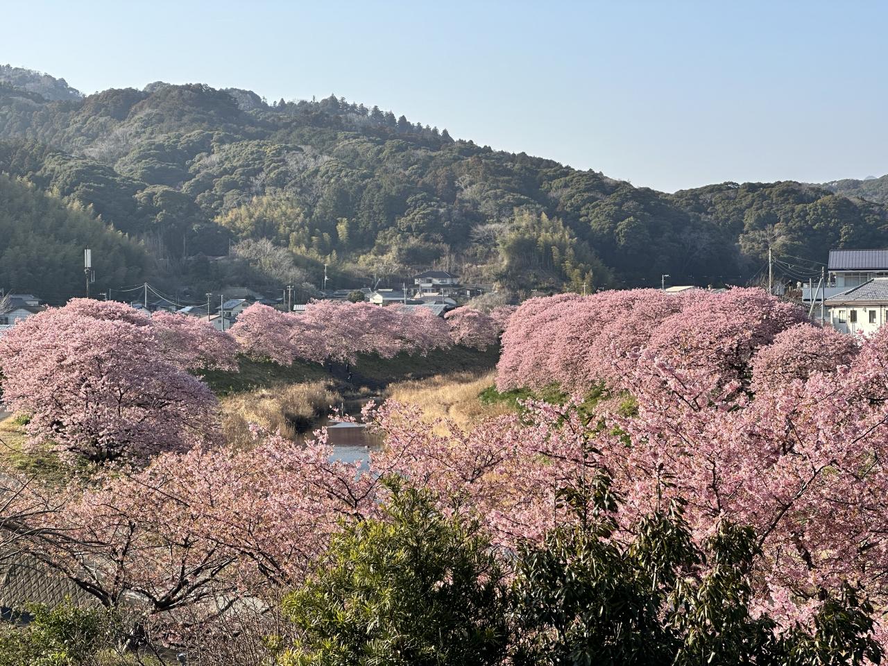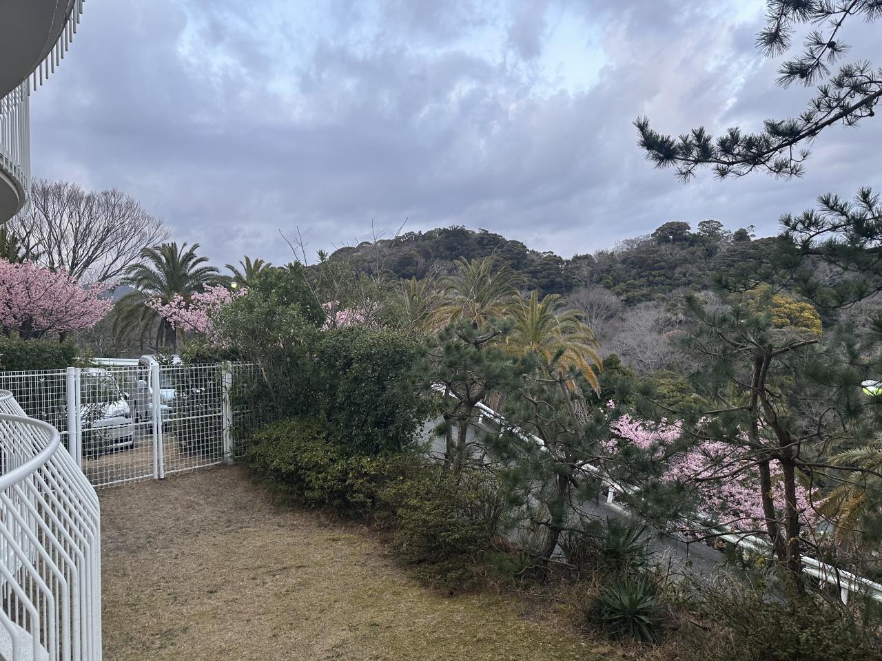 ホテルに来る急な上り坂と河津桜が見えてこれはこれで良い感じ。