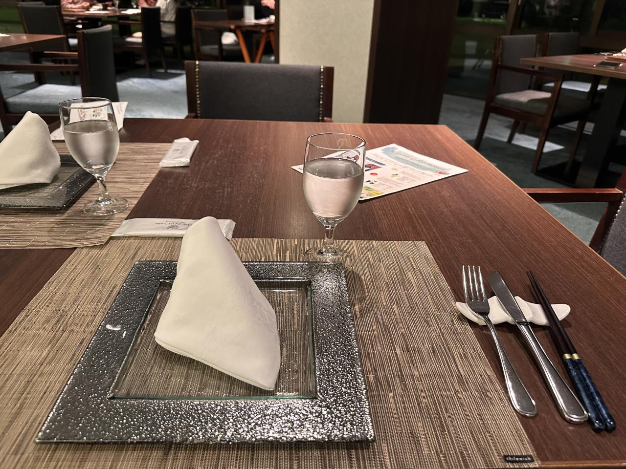 テーブルウェア。和洋折衷なコース料理なのでお箸が添えられています。