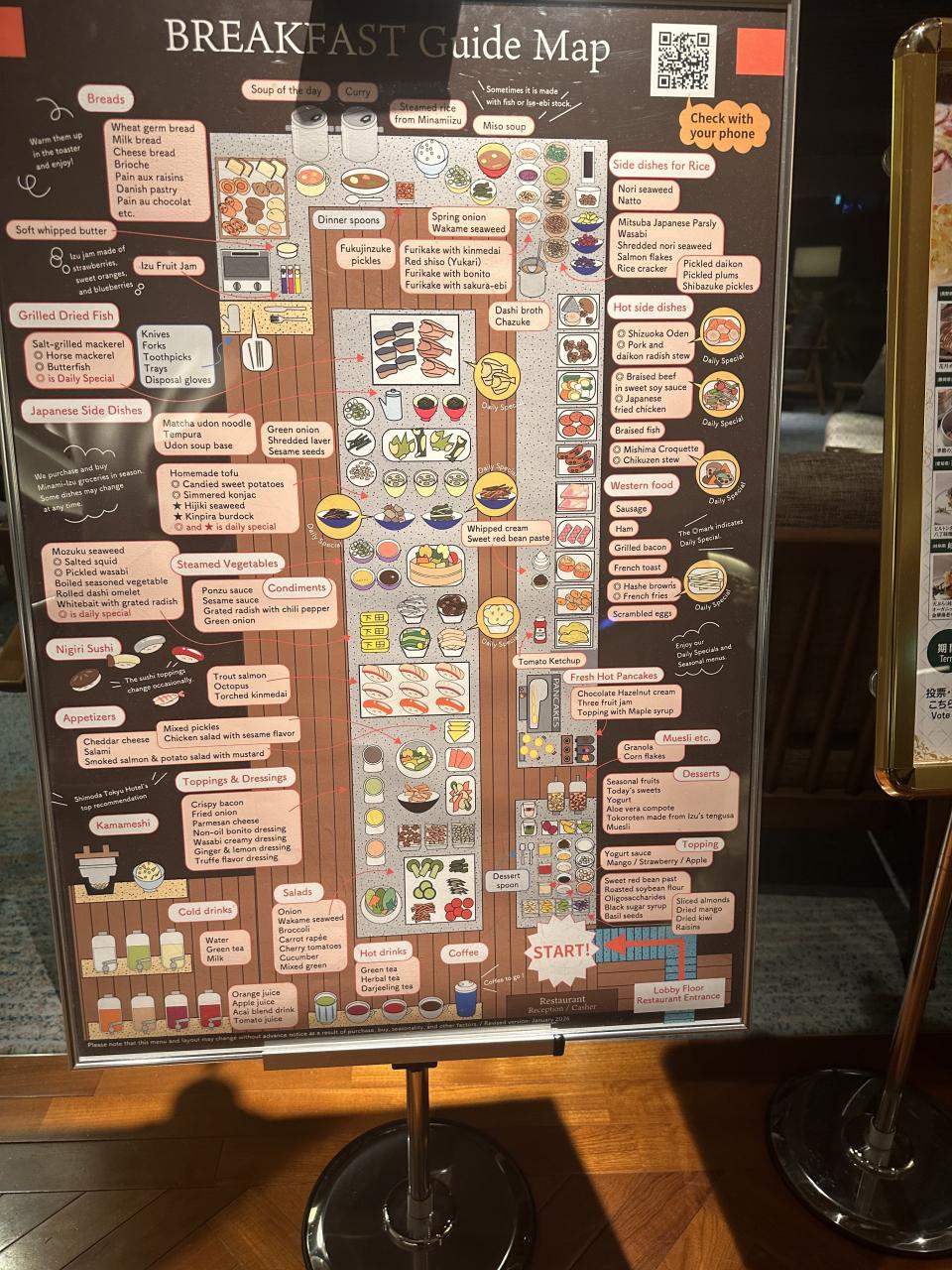 朝食の案内。地図になってます。
