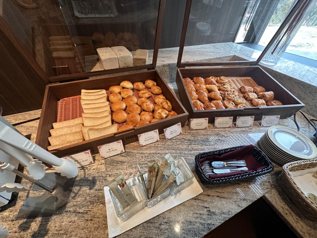 料理がたくさん。パンもたくさんあったけど一度の朝食ではとても食べきれない。