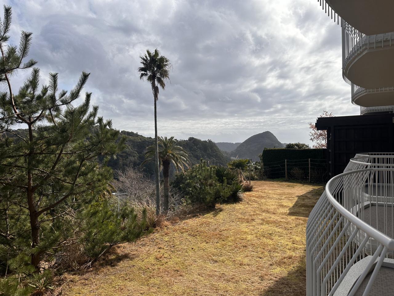 海は見えないかなと思いましたが、右端のほうにちょっと遠くの海が見えます。ホテル自体が高台にあるからね。