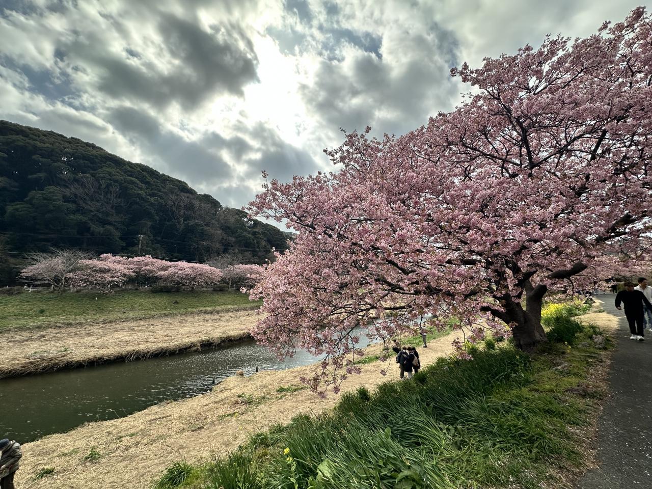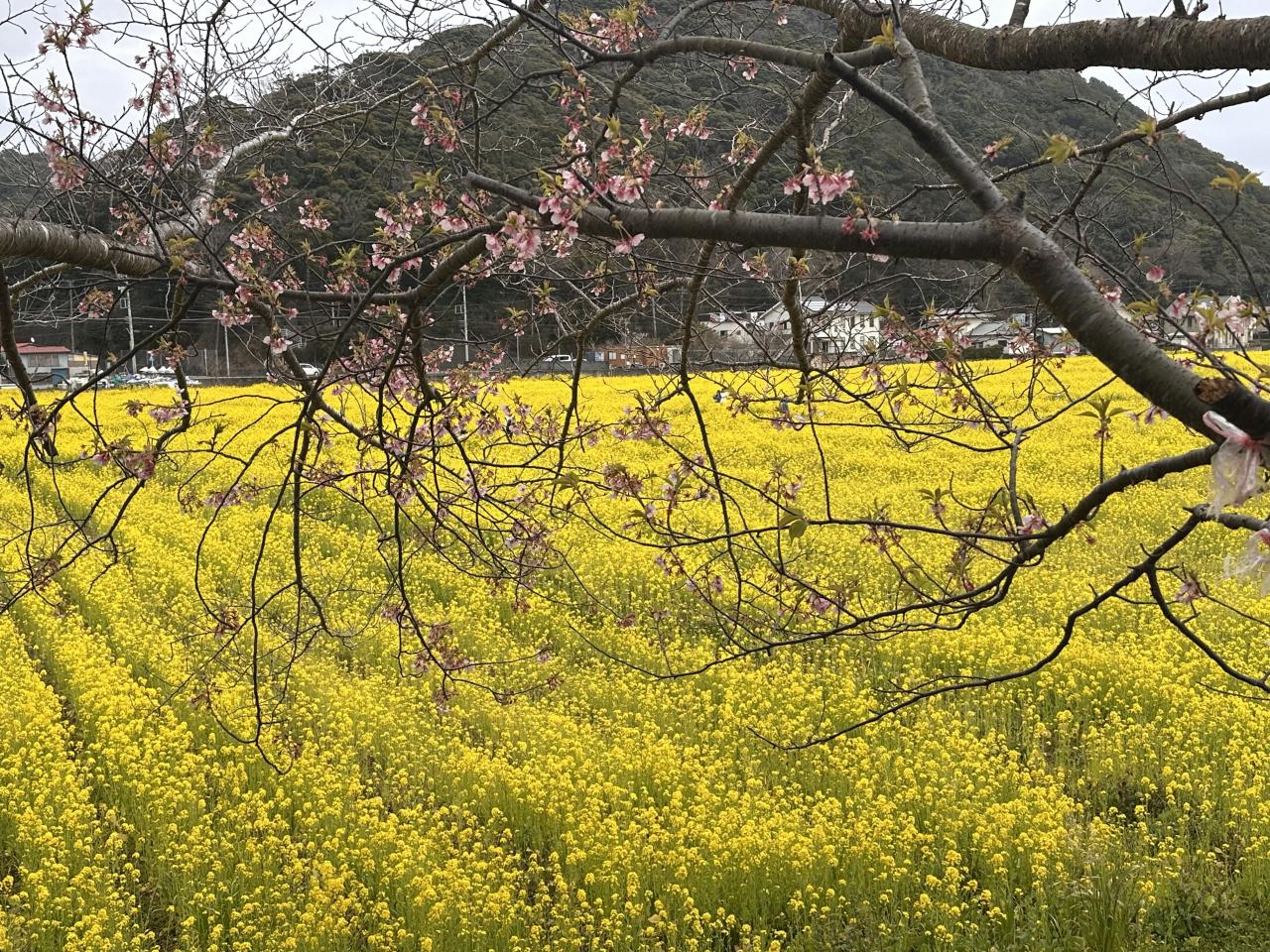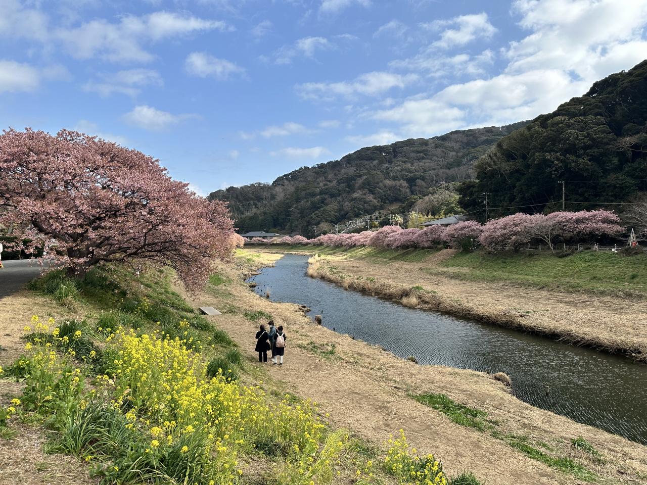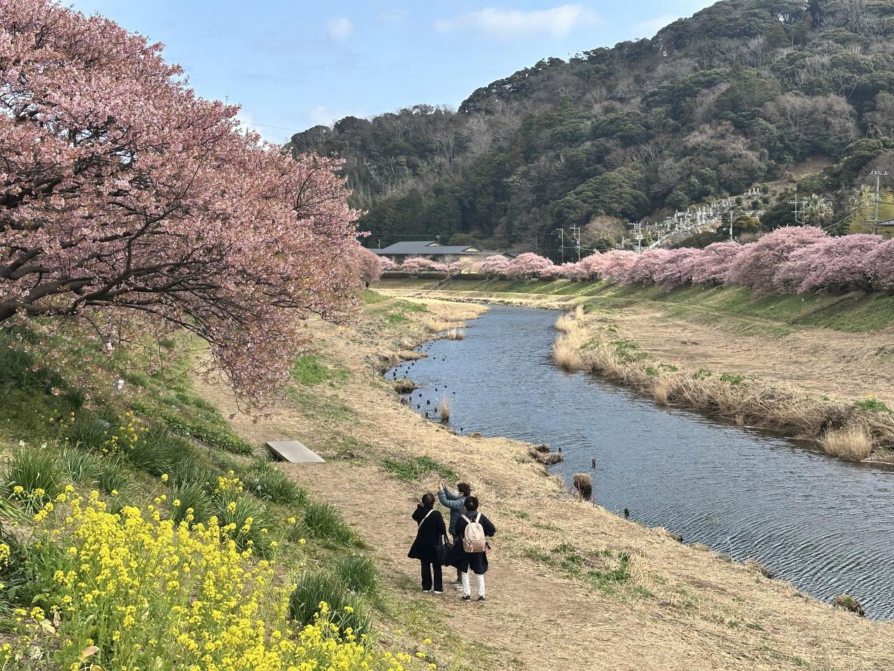 川沿いの河津桜はまだまだ見頃ですが、菜の花はあまり咲いていませんね。