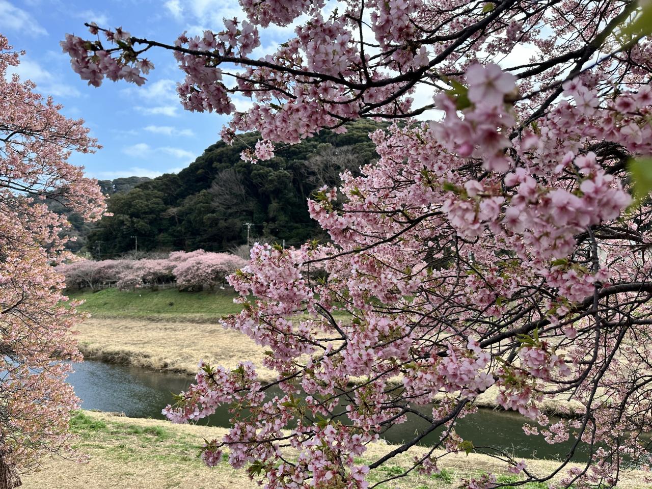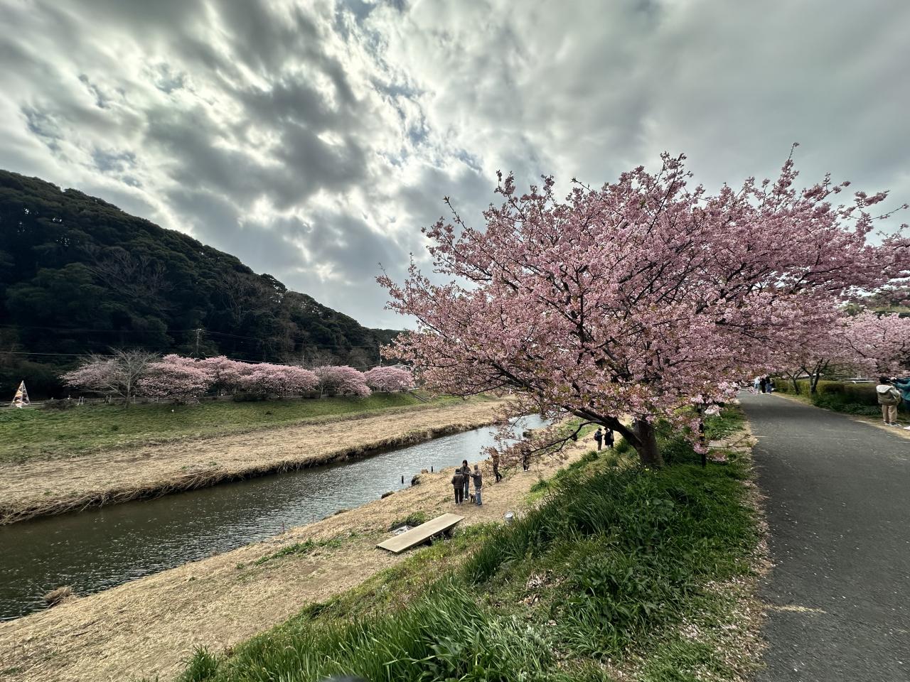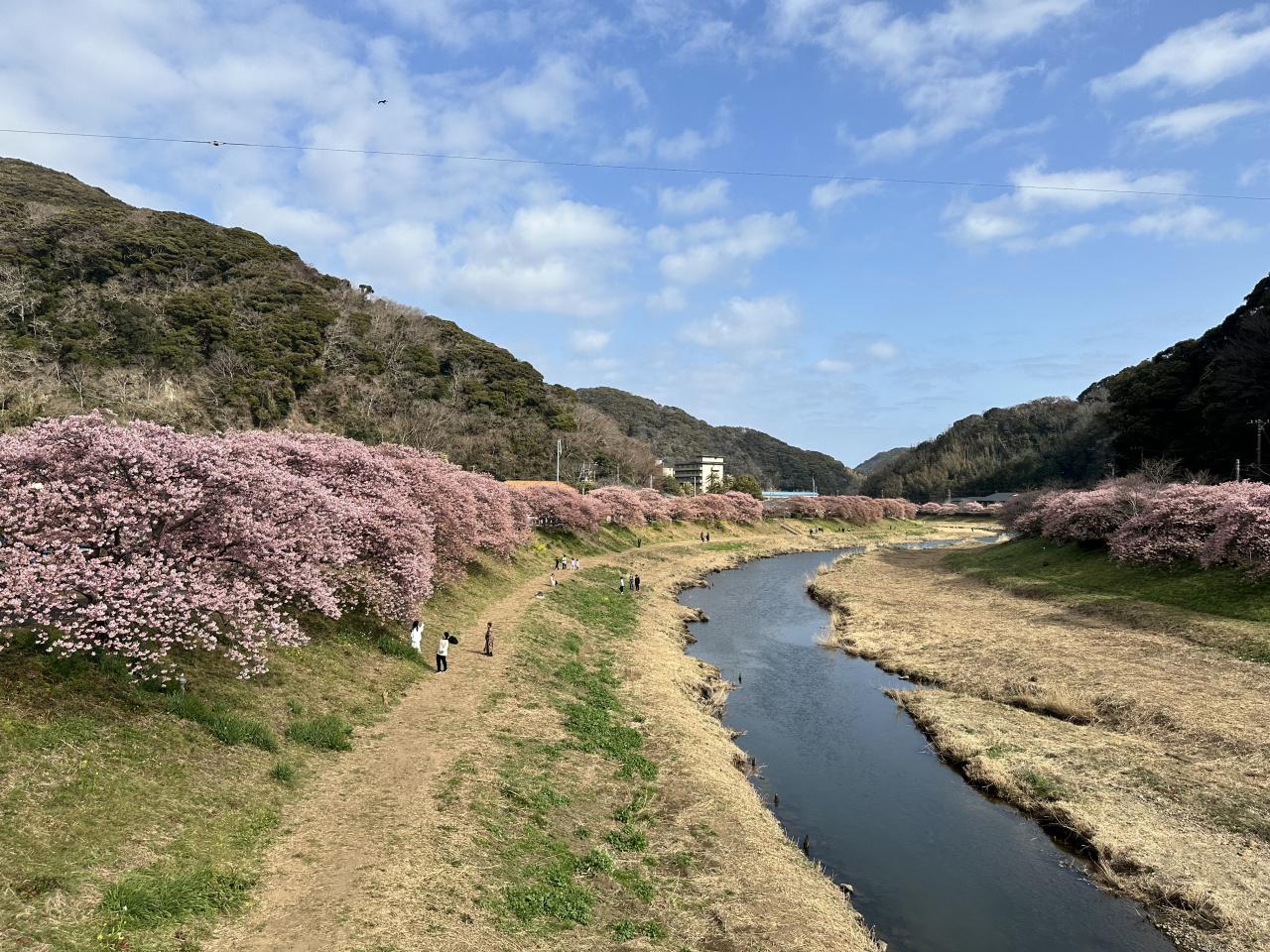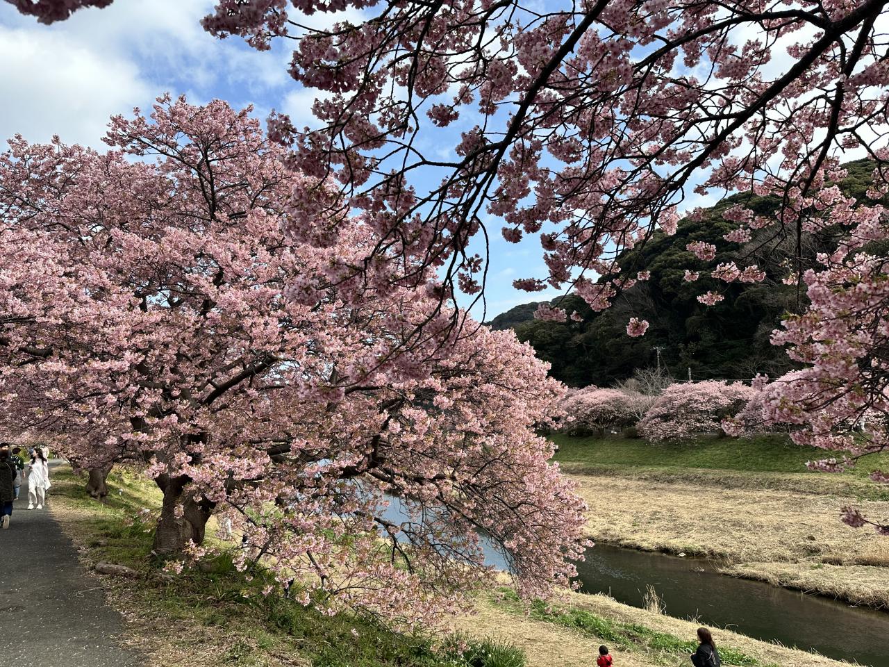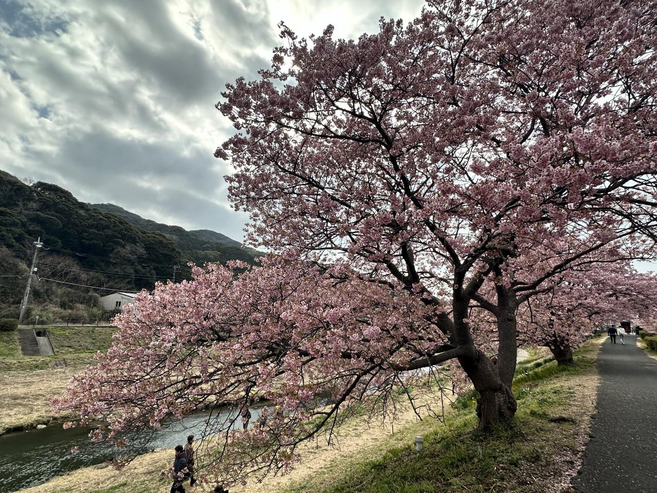 川沿いの河津桜はまだまだ見頃ですが、菜の花はあまり咲いていませんね。
