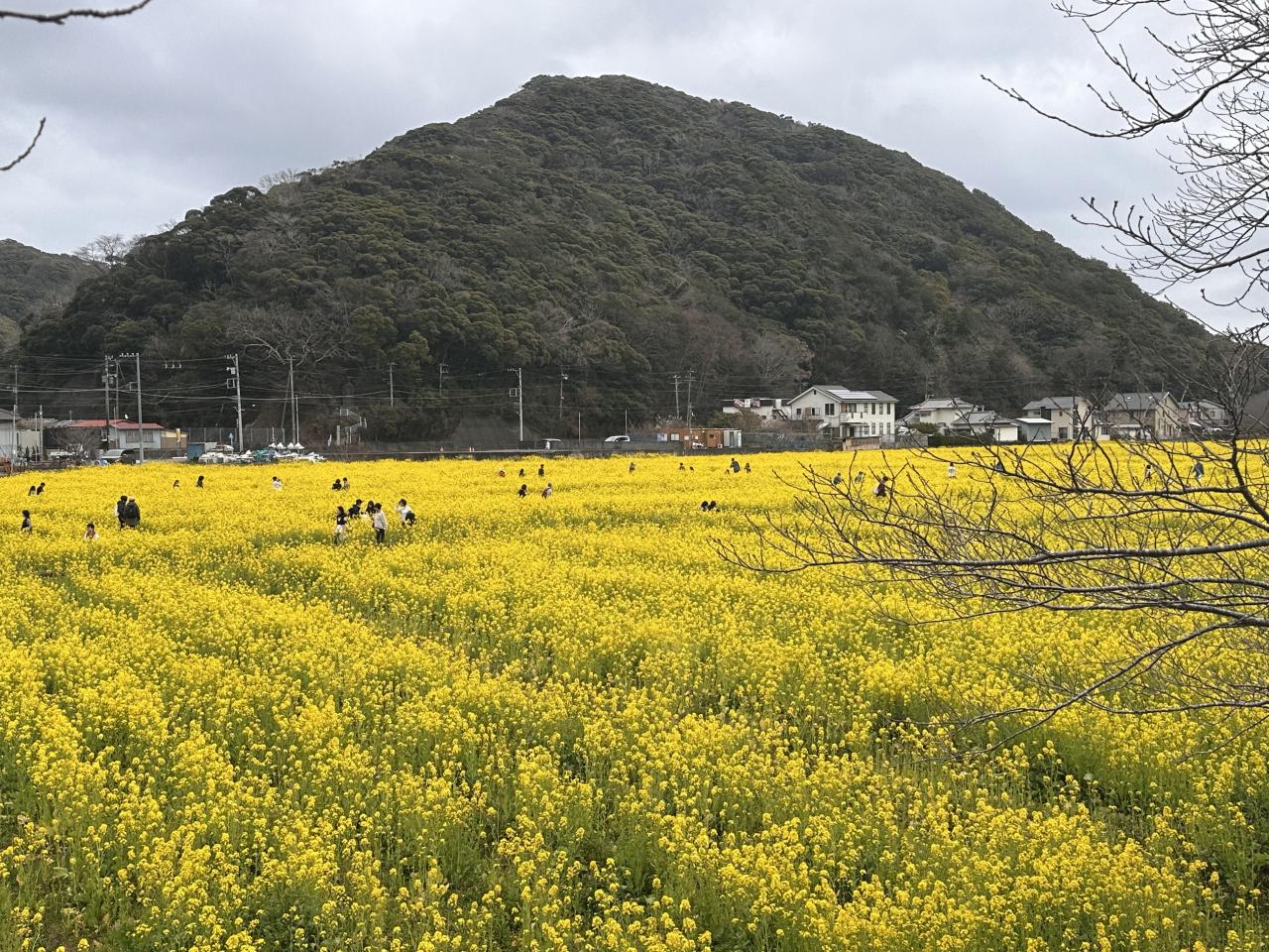 南伊豆町に向かうと途中に元気な百姓の花畑という広大な菜の花畑に出くわしました。
