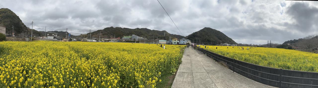 一面黄色い畑と花のにおいが凄い。