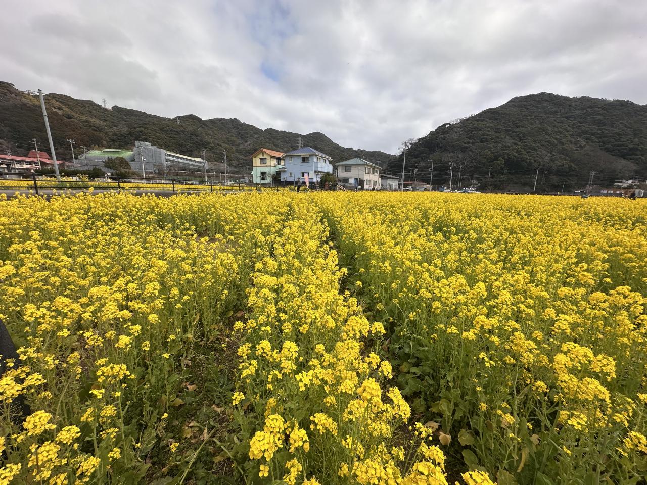 南伊豆町のみなみの桜と菜の花祭、青野川沿いの河津桜の並木と川岸の菜の花の共演が見所ですが、菜の花の広大な畑も別にあります。