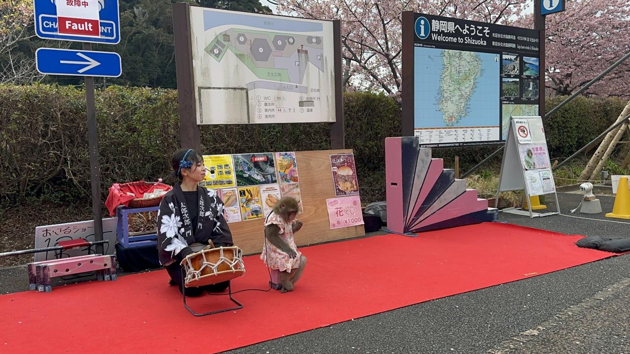 お祭り会場では猿回しをやっていました。