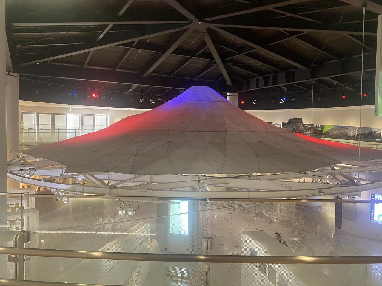 1000分の1スケールの富士山が、1階に平面図、2階に立体オブジェで迎えてくれます