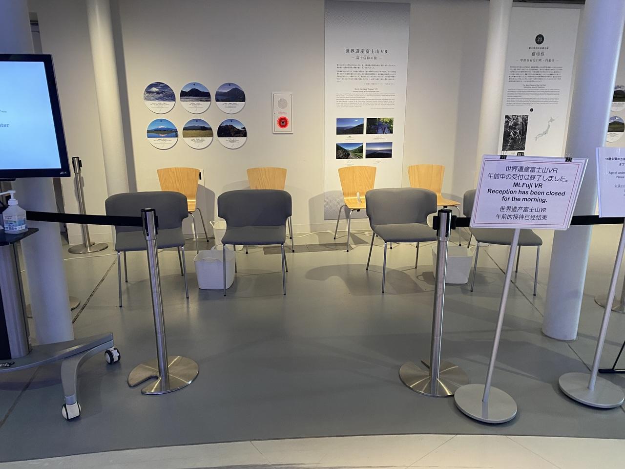 ここに座って、3Dゴーグルを装着、15分の富士山登山を体験できます。何とか、午前の最終回に間に合って、無事に初登山しました。