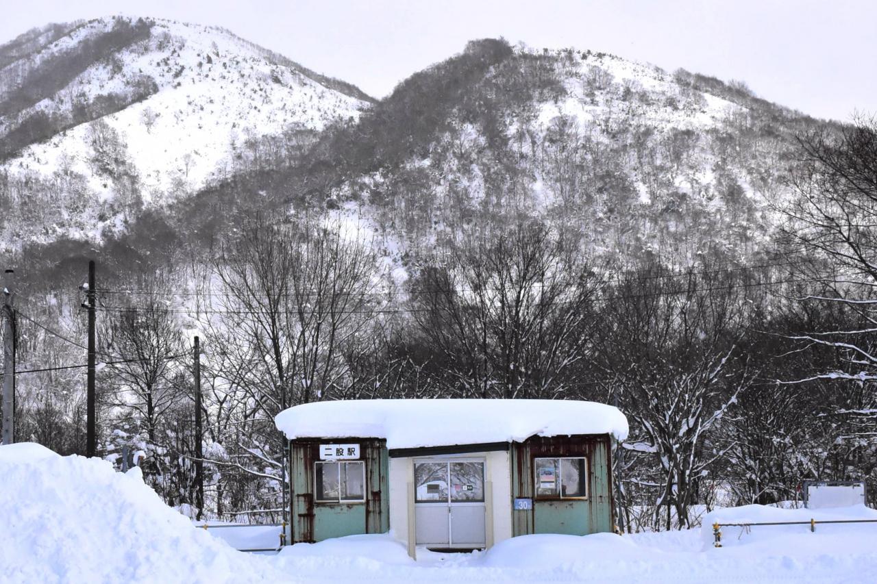 「雪景色にポツンと佇む二股駅」