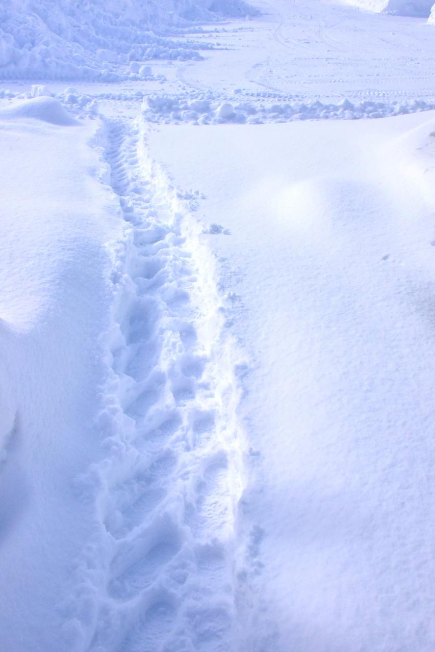 雪かきなどの道具がないので、足踏みしながら作った道。