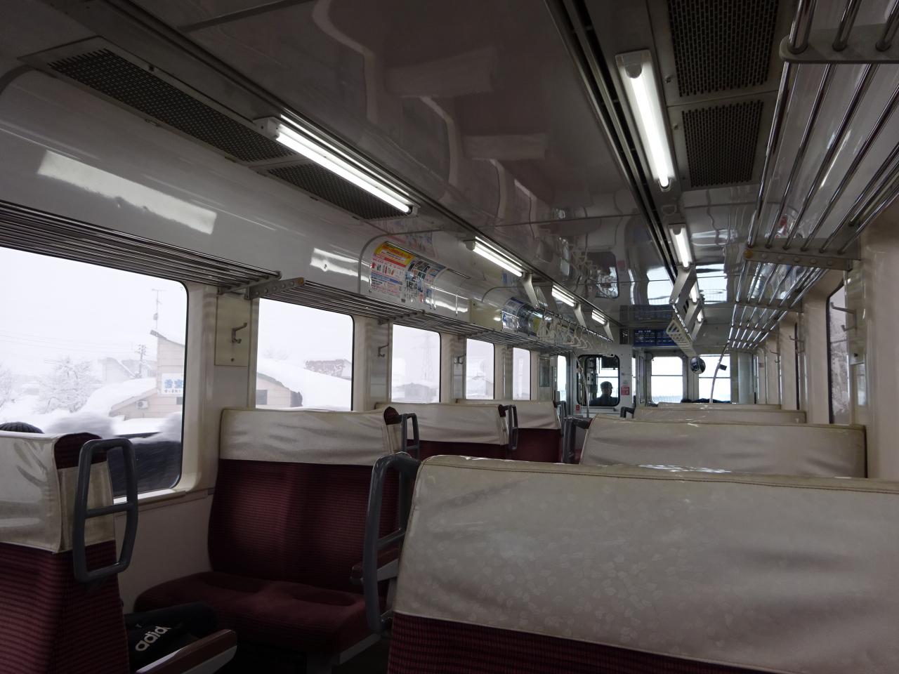 それを美佐島駅の公民館みたいな待合室であぐらかいて食べたかったんですけどね。代わりに、雪の車窓を見ながらの昼食もなかなかいいものでした。