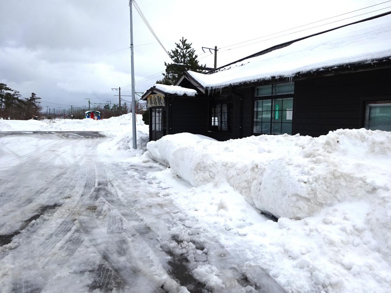 そういえば以前、へけけさんとアーリンさんの2人が犀潟駅に立ち寄ってましたね。改めてその時の旅行記を拝見したら、当時も今と同じ黒い駅舎。今回は雪がすごくて建物の外観が一部しか見えなかったので、「こういう駅舎だったんだなあ」と思いました(笑)