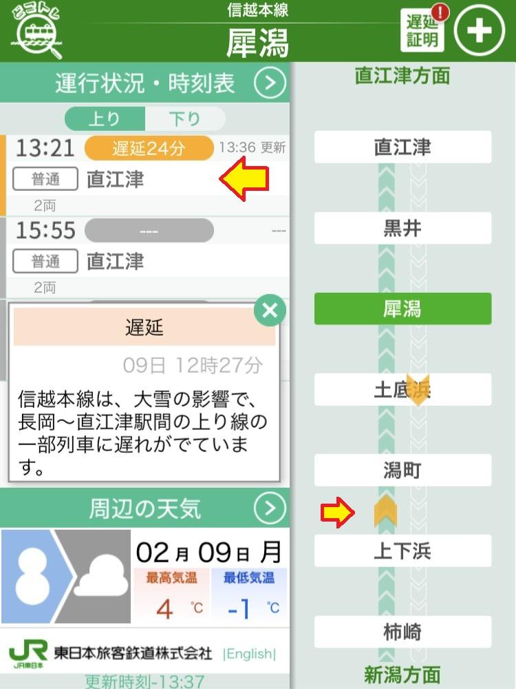 ほくほく線も一部電車に遅れが出ていて、予定も変更。