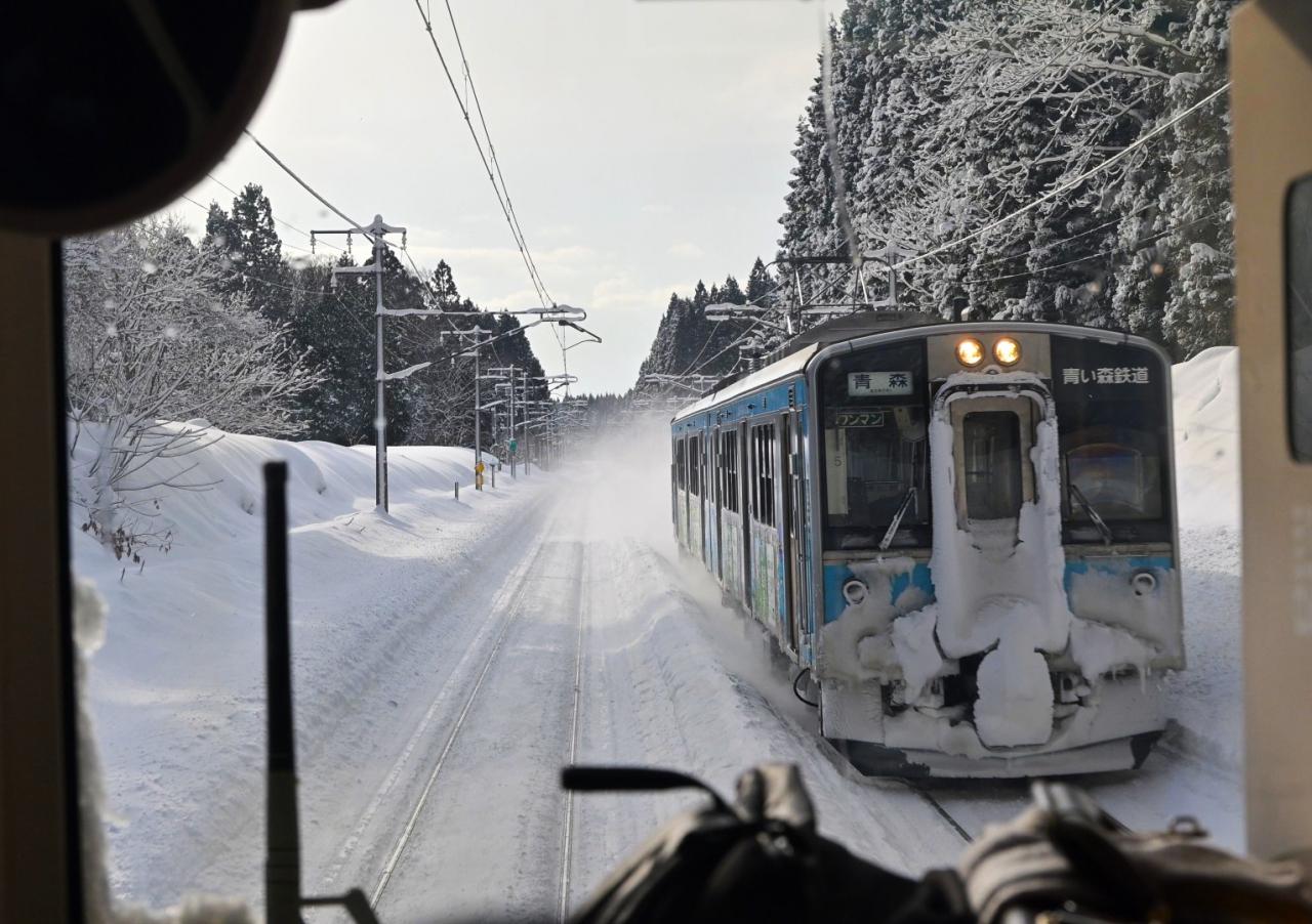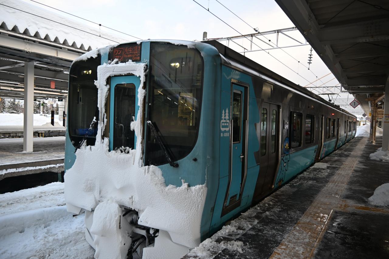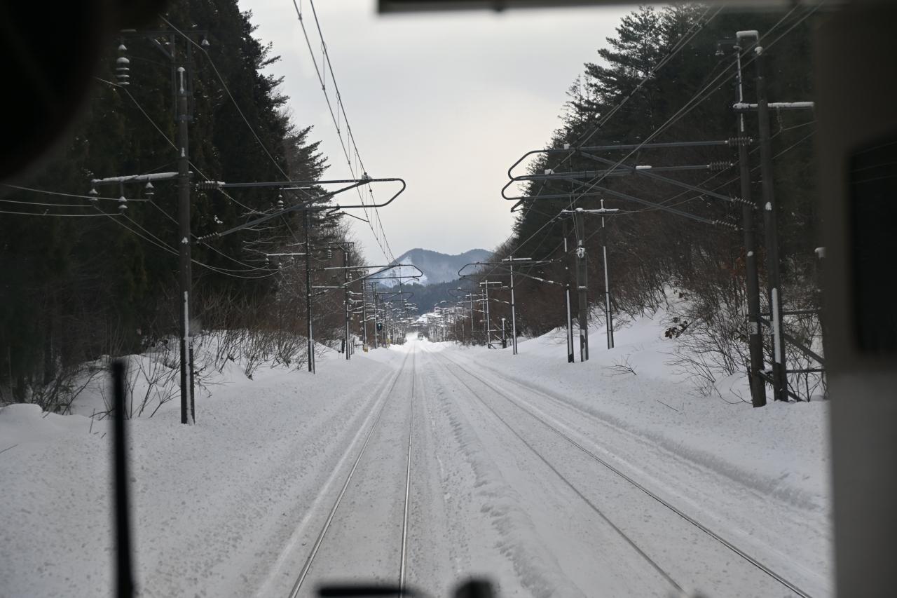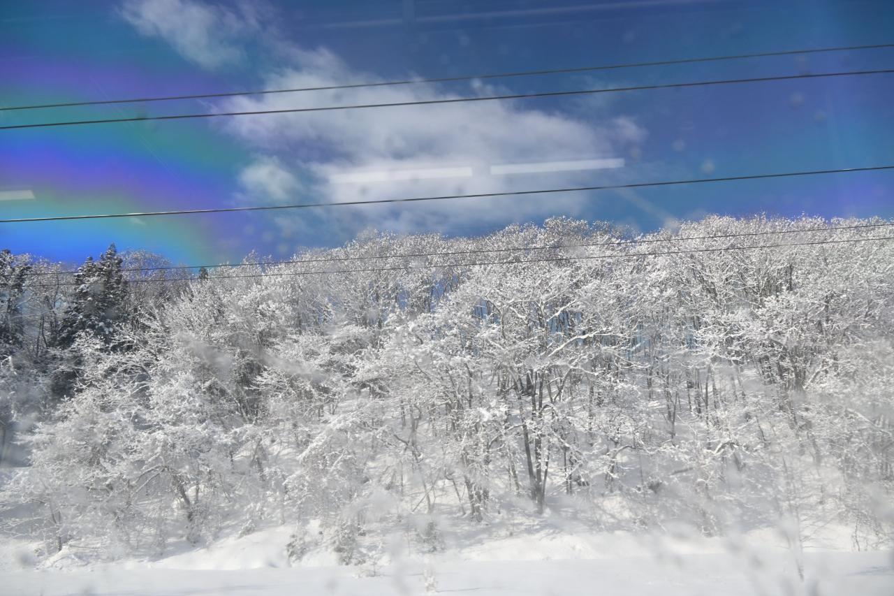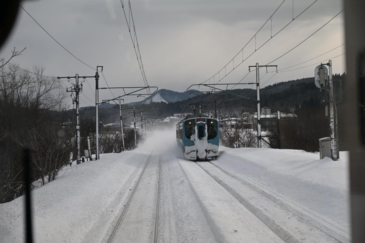雪が降った直後でしたので乗車中の車窓・すれ違う列車と楽しめました。